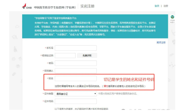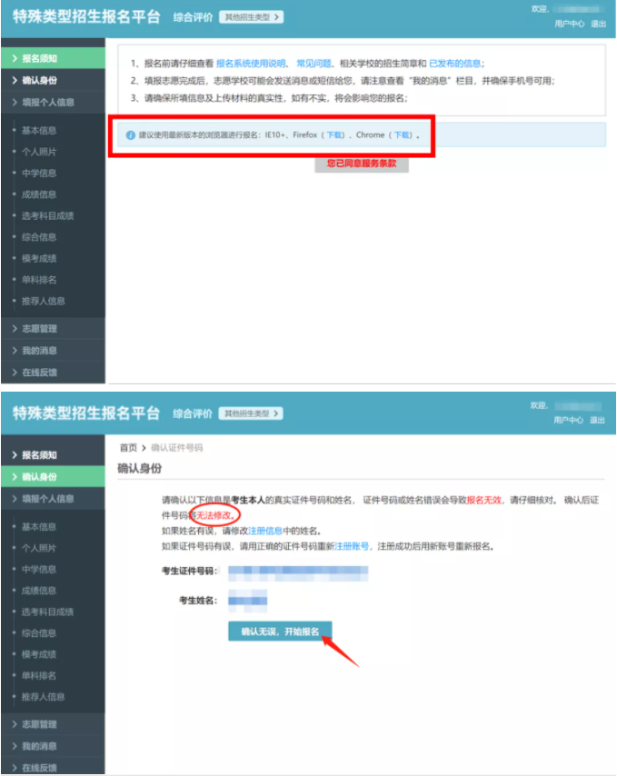 注意!确认无误后无法再进行信息修改,请考生一定要认真核对姓名和身份证号!