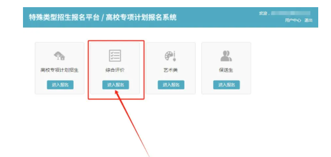 登录后需要选择综合评价,即可进入正式报名界面,如下图: