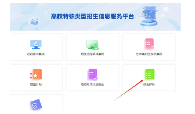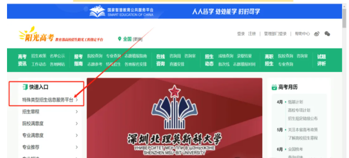 考生登录阳光高考平台之后,点击“特殊类型招生信息服务平台”,如下图