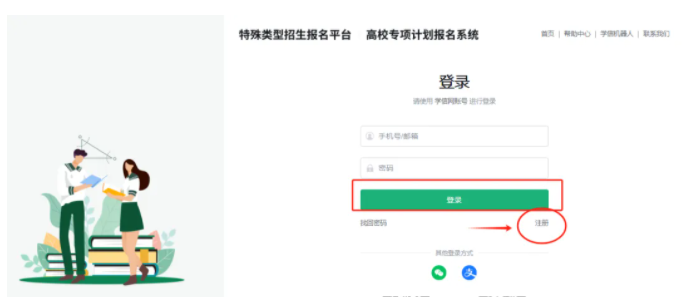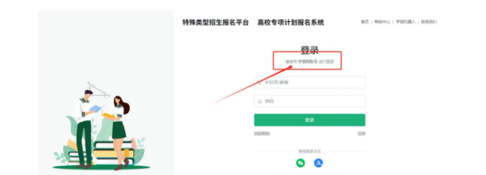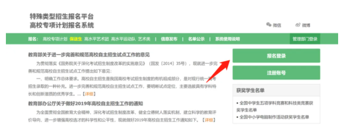 进入“特殊类型招生报名平台、高校专项计划报名系统”如下图: