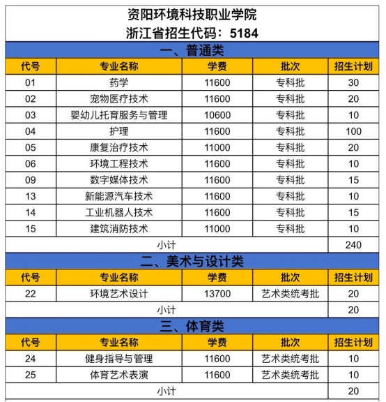 2024年资阳环境科技职业学院浙江招生计划出炉!