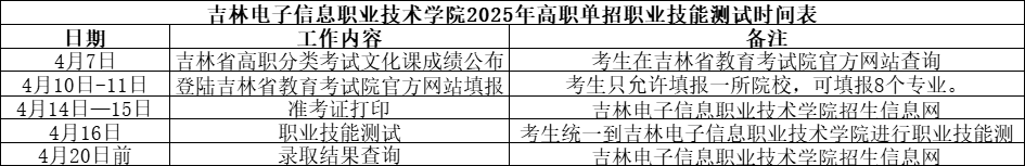 报考我校考生请于 2025年4月14日—4月15日 登录吉林电子信息职业技术学院招生信息网(https://zs.jltc.edu.cn/)打印准考证。