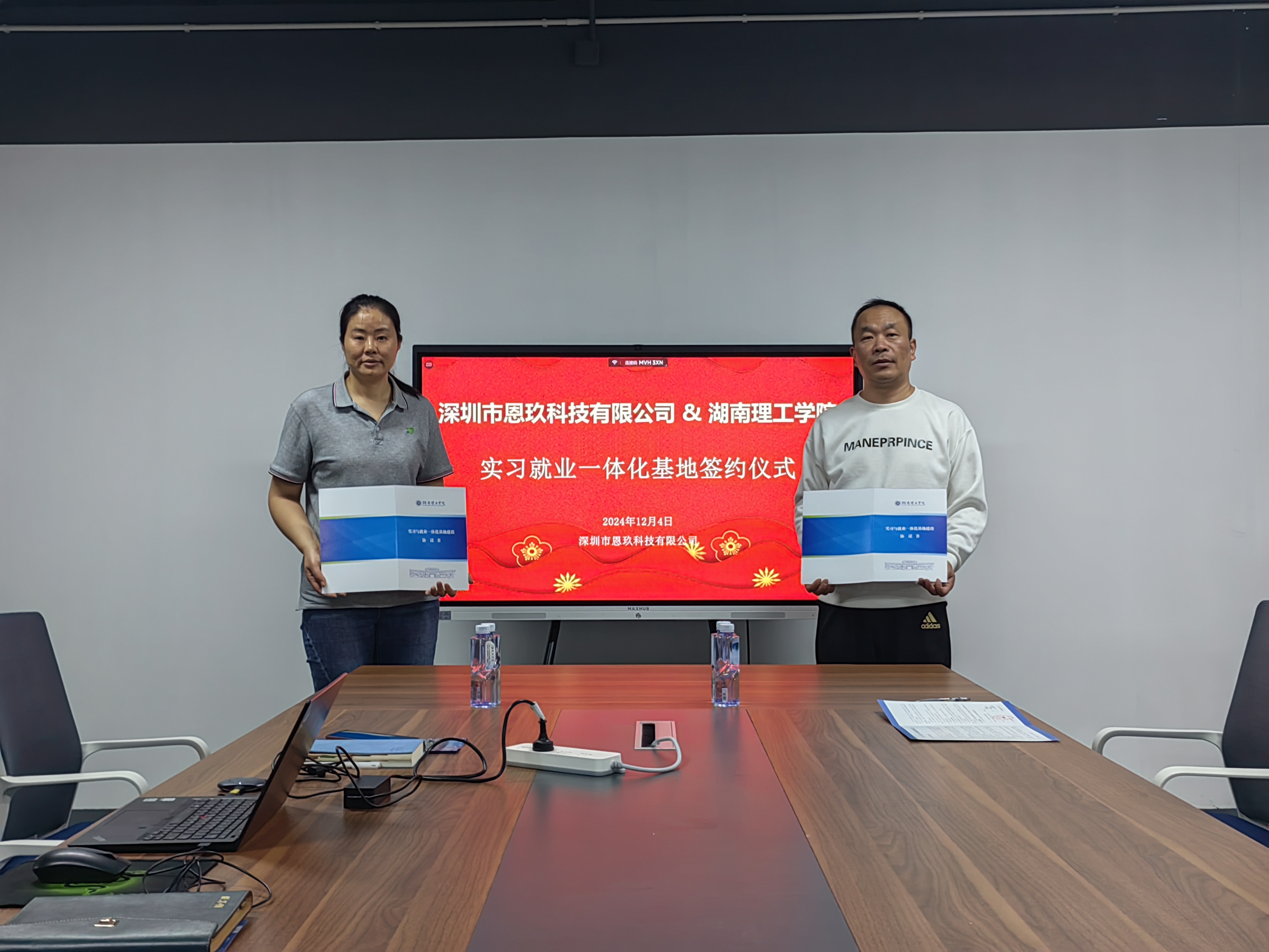 走访期间,南湖学院一行人不仅参观了各企业的办公环境和技术研发中心,还特别看望了刚加入恩玖科技工作的机电系21级学生们,了解他们在新岗位上的适应情况和发展前景。在随后举行的校企洽谈会上,双方就人才需求、实习就业等方面展开了深入交流。喻立平书记强调了此次合作对于提高学生综合能力和增强其职场竞争力的重要性。他提到:“我们将继续秉持‘育人为本、产业为要’的原则,积极探索更多元化的合作形式,确保每一位毕业生都能找到满意的工作。”同时,他也感谢了企业在接收实习生方面给予的支持,并期待在未来能够实现更多的共赢局面。为了进一步加强合作关系,共同推动学生实践能力的培养和就业质量的提升,南湖学院与三家公司分别正式签署了《实习就业一体化基地协议》。这标志着校企两方将在未来更加紧密地携手合作,共同致力于高素质应用型人才的培育与发展。