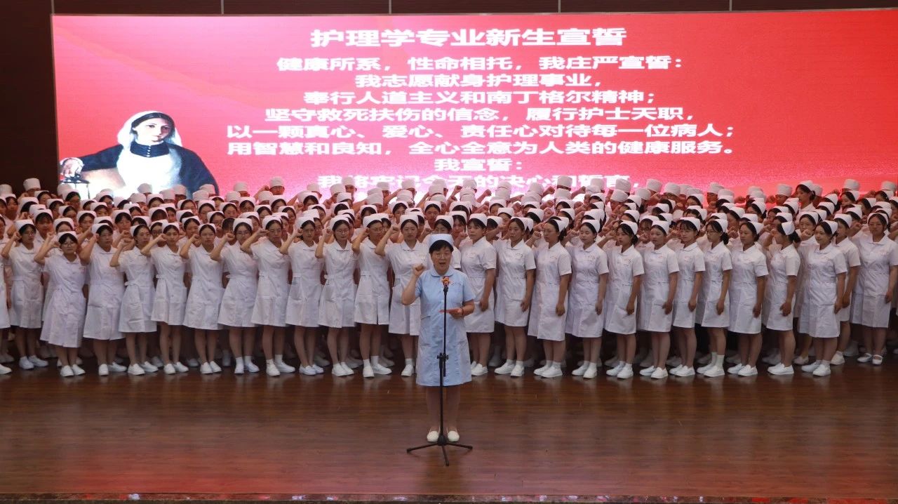 在庄严神圣的仪式上,护理学、康复治疗学及健康服务与管理专业的405名新生齐聚一堂,立下了献身医学事业的坚定诺言。