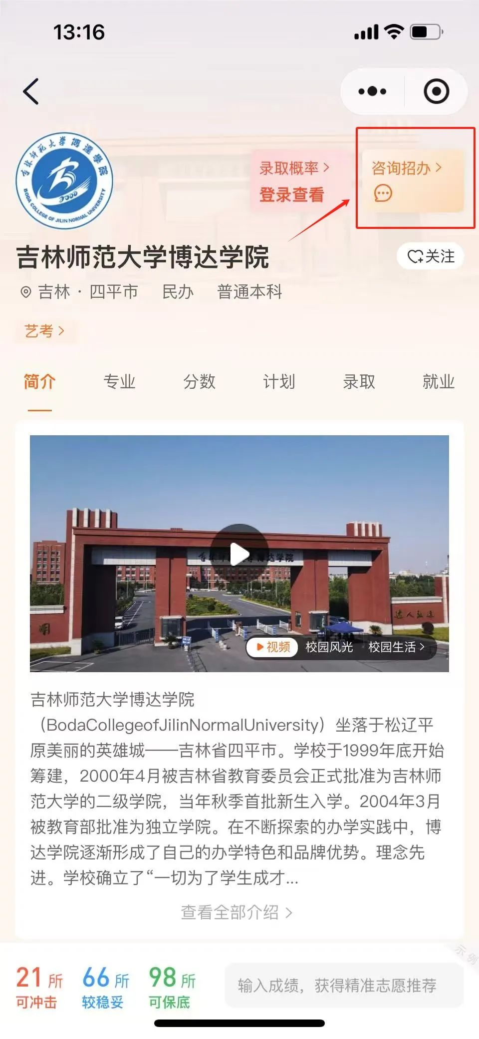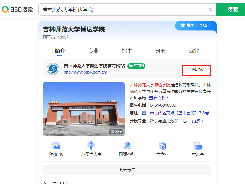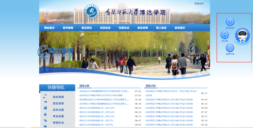 登录【吉林师范大学博达学院】招生信息网: