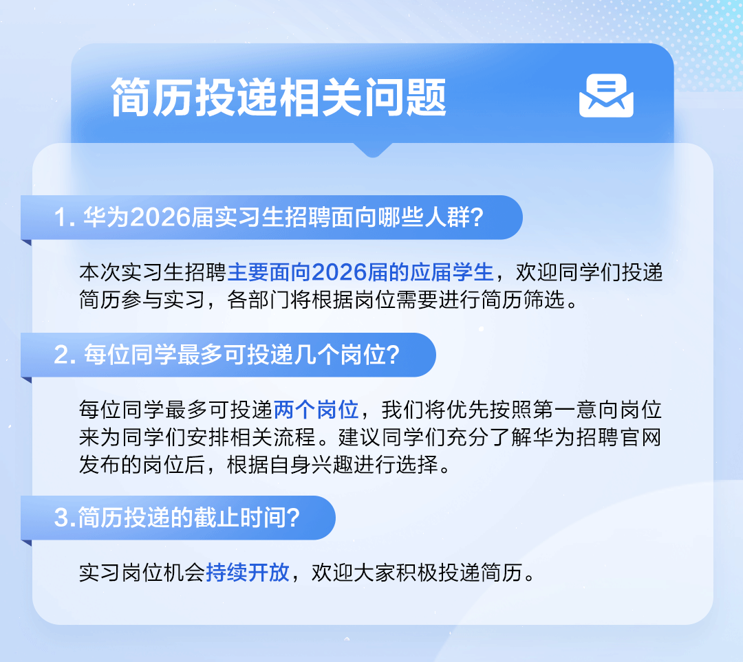 华为2026届实习生招聘FAQ
