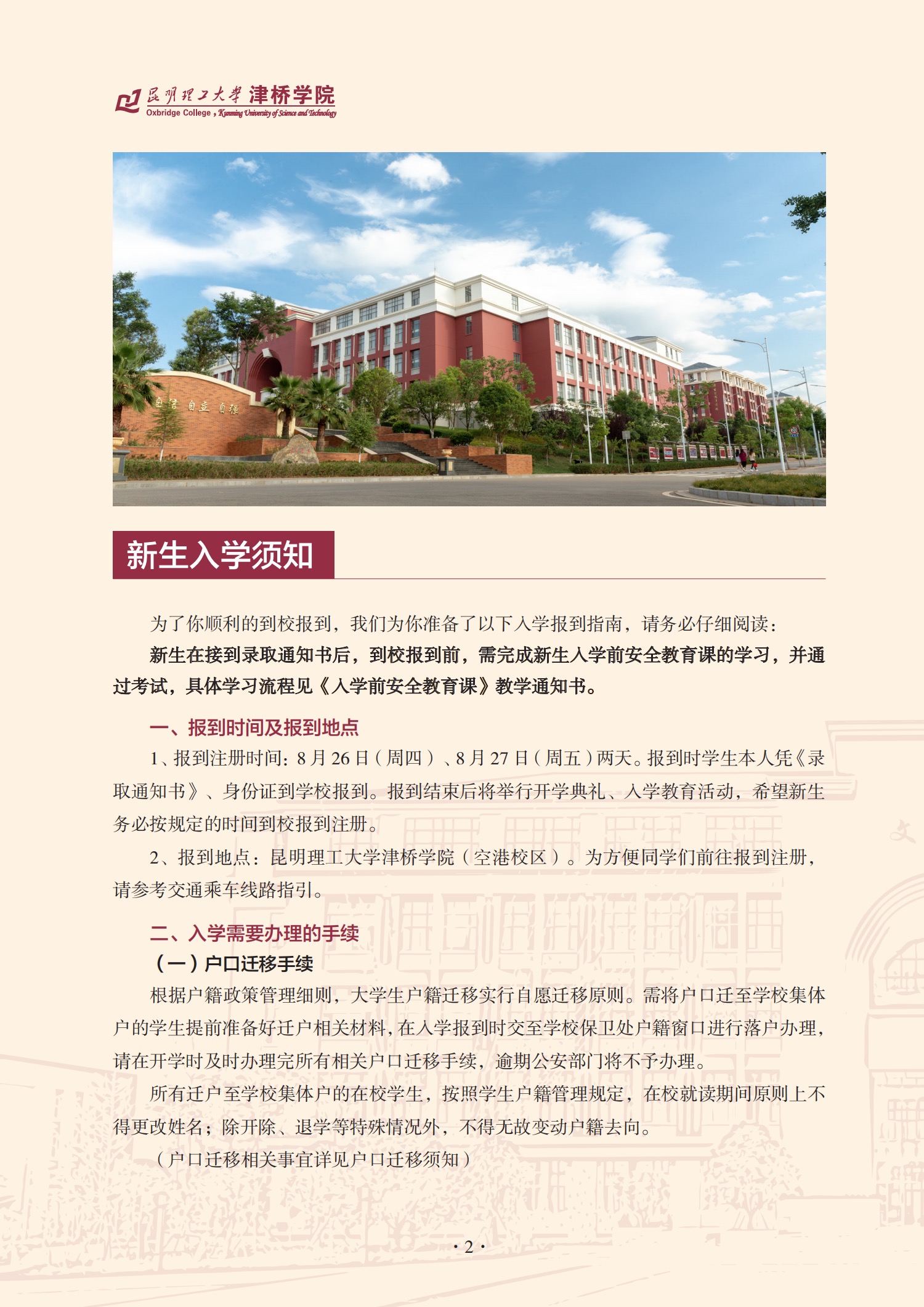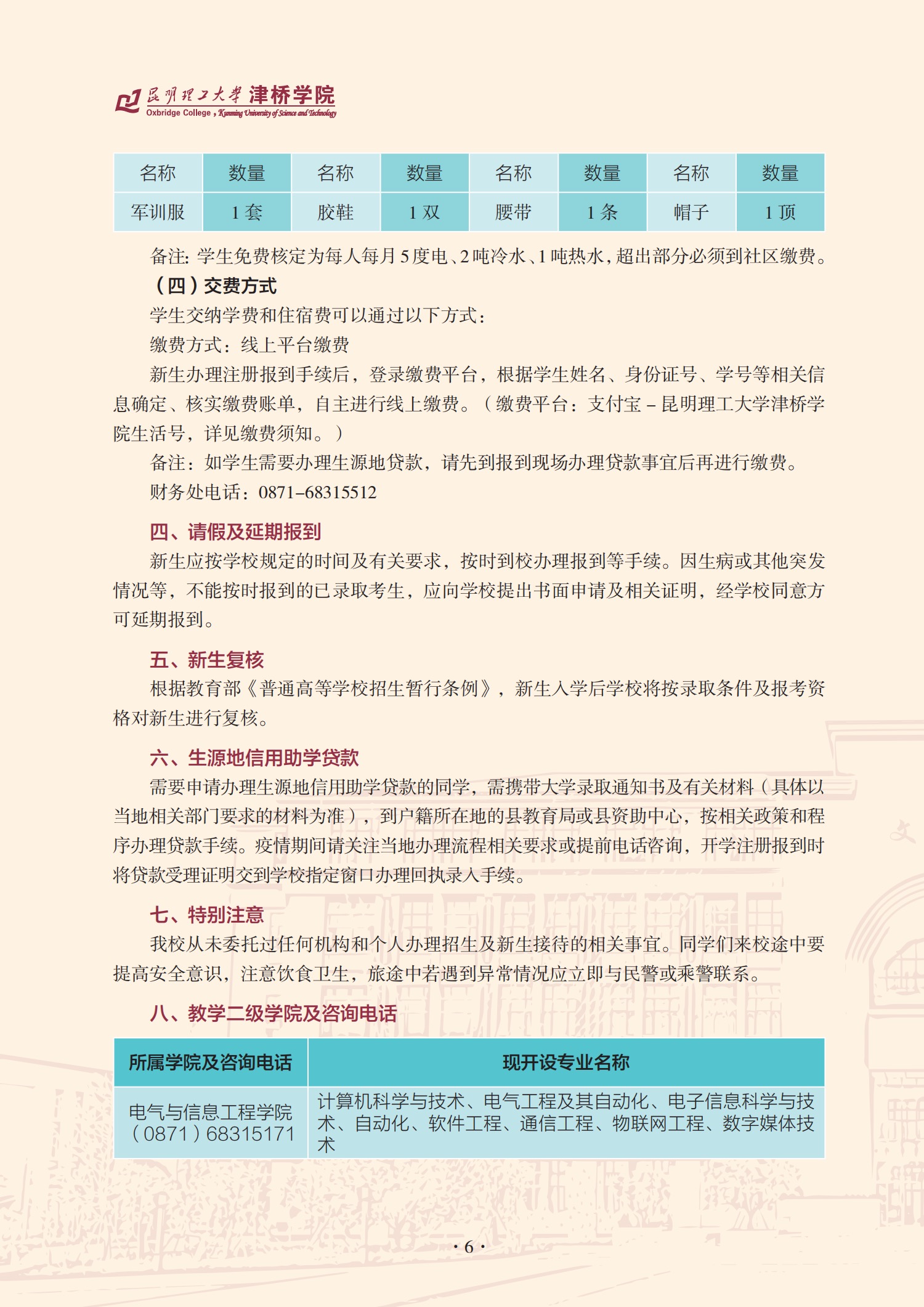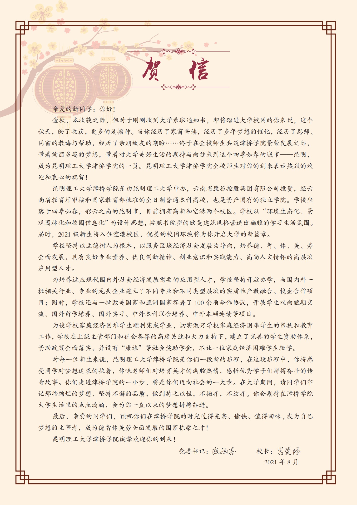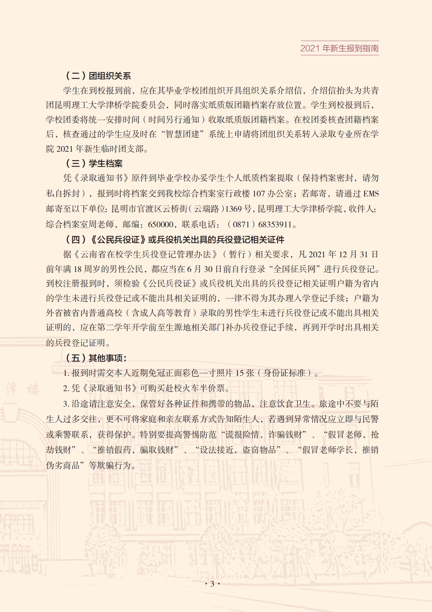 昆明理工大学津桥学院2021级普通本科入学须知