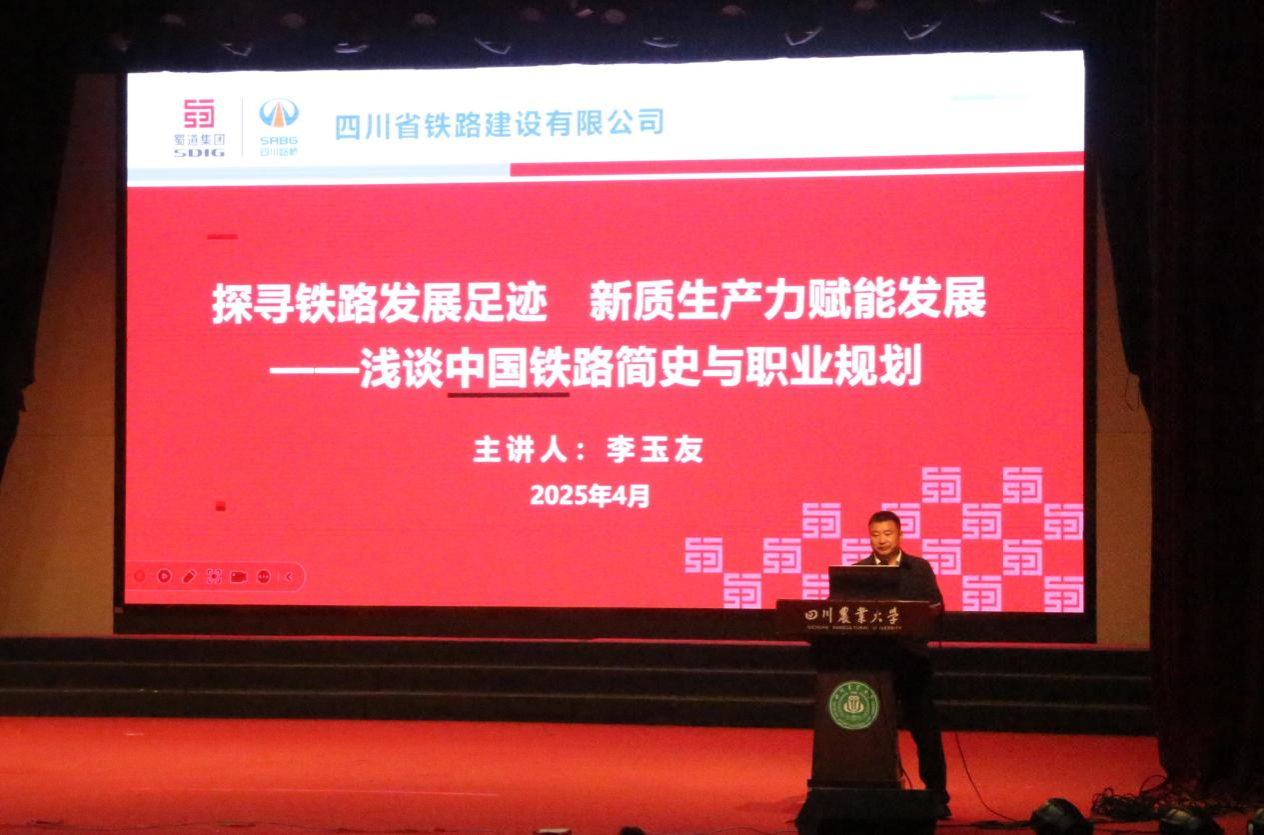 4月8日下午,四川省铁路建设有限公司党委书记、董事长、四川路桥铁路工程分公司党委书记、四川省应急管理厅应急管理专家、蜀道集团工程建设专家库成员、四川省交通运输厅高级职称评审委员会专家、中华全国总工会“火车头”奖章获得者李玉友应土木工程学院邀请来校,于活动中心为师生带来了一场主题为“探寻铁路发展足迹 绘制职业规划蓝图——浅谈中国铁路简史与职业规划”的学术交流讲座。都江堰校区综合管理办公室党委书记陈文华及四川省铁路建设有限公司相关人员出席,学院师生积极参加。讲座由学院党委副书记赵中国主持。
