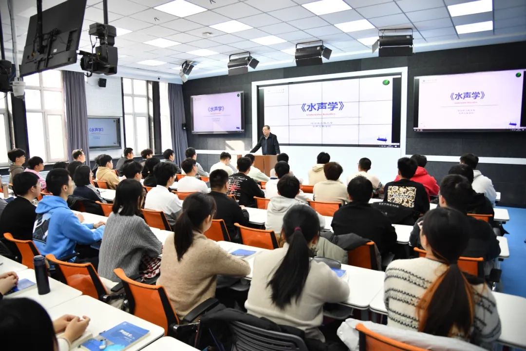 “水声学发展的历史很短,可以说是一门‘年轻’的学科,有着无限的发展潜力和广阔的未来前景,但几十年前它也是一门‘边缘’学科。党的十八大以来,习近平总书记提出,建设海洋强国是实现中华民族伟大复兴的重大战略任务,水声学迎来了大发展。同学们,水声学科还有很多问题有待你们去解决,中国的海洋数据等着你们年轻一代去丰富、补足。”2月25日上午,中国工程院院士、水声工程学院教授杨德森在21B教学楼3085教室,为水声工程专业的大三本科生讲授专业核心课程《水声学》开学第一课。