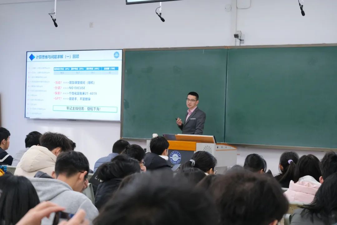 《计算思维与问题求解(二)》是工科大类的纲领性课程之一,开学第一课,计算机学院李伟老师早早来到课堂做准备。他以智慧海洋领域未来科技创新人才需求切入,勉励同学们不断积累毫厘之功,为今后深入学习船舶与海洋工程和控制科学与工程等学科问题奠定思维基础,提高分析理解真实世界系统并解决复杂问题的科技创新能力。