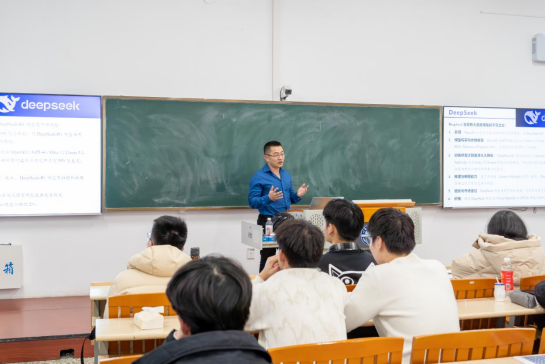智能学院李波老师带来《机器学习》第一课,结合近期热门的人工智能大模型DeepSeek,他通过生动的案例和通俗的语言,为同学们揭开大模型的神秘面纱。课上,同学们积极提问,气氛热烈。李波表示,“机器学习是人工智能的基石,对于未来从事人工智能工作至关重要。希望同学们在新的学期,能以永不满足的好奇心和敢为人先的创新精神探索《机器学习》课堂。”