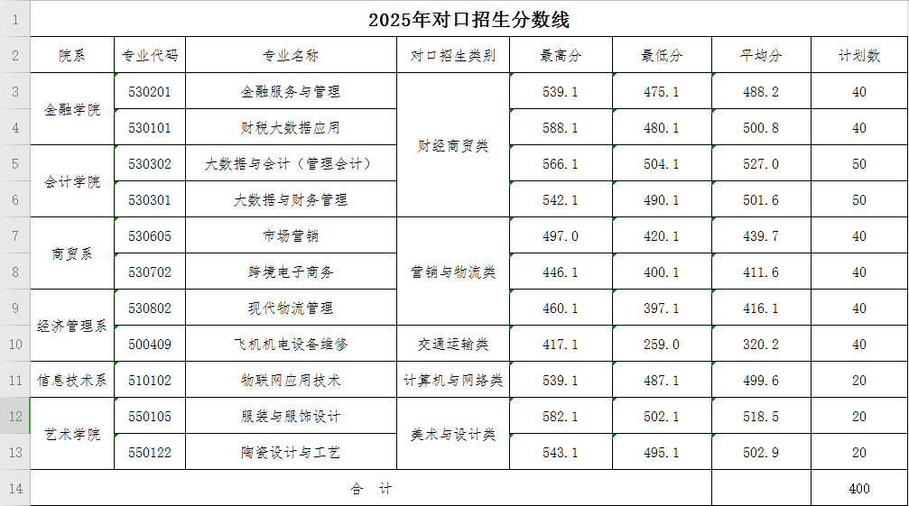 2025年对口招生分数线