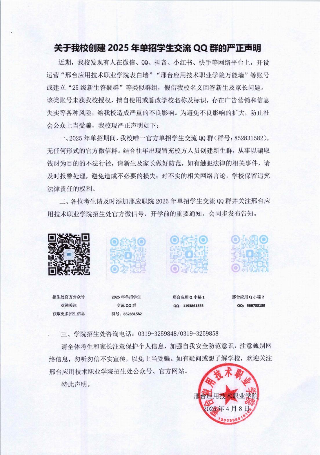 关于我校创建2025年单招学生交流QQ群的严正声明