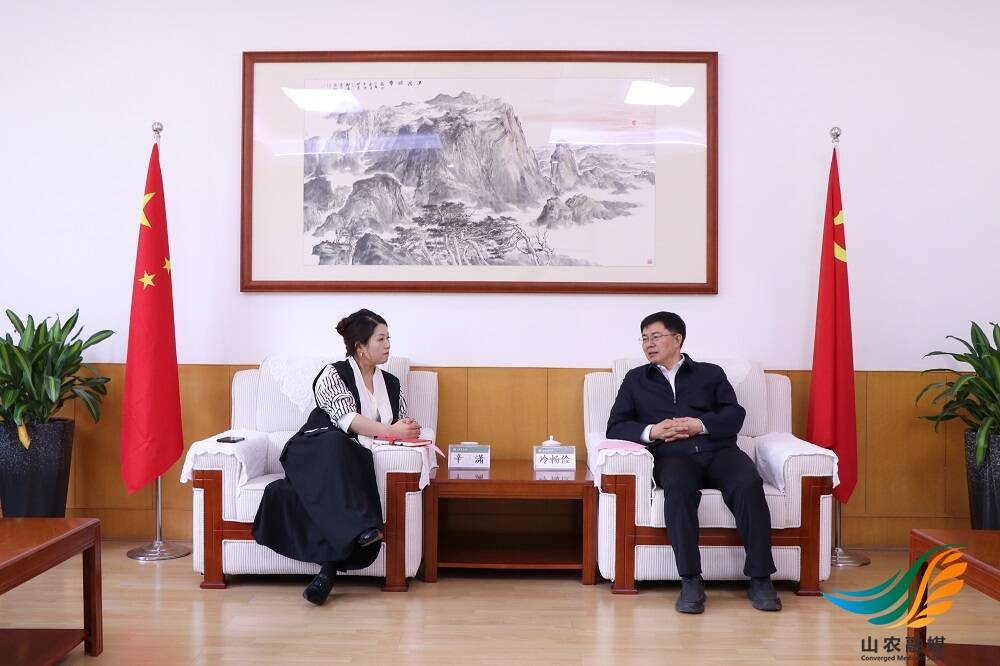 山农融媒4月12日讯4月10日,山东未来集团政企总监、市场业务部总经理辛潇一行来校交流合作。学校党委副书记、校长冷畅俭会见客人,党委常委、副校长周玉玺参加座谈。