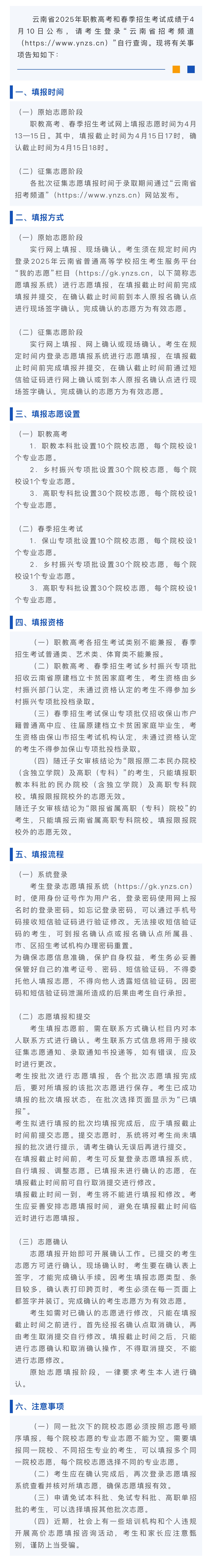 云南省2025年职教高考、春季招生考试网上填报志愿考生须知