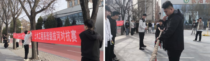 3月25日,土木系开展了为期一周的班级拔河对抗赛。随着裁判员一声哨响,各班参赛队员紧握长绳、扎稳马步,在“一二!拉!”的整齐口号声中全力拼搏,展开激烈角逐;场边啦啦队呐喊助威,加油声此起彼伏。经过多轮激烈对抗,最终测量2401班凭借默契配合和顽强毅力夺得冠军,建工2304班、建工2301班分获亚军和季军。比赛展现了土木学子朝气蓬勃的精神风貌,是系部推进“五育并举”的生动实践。未来,土木系将继续开展多样化的文体活动,助力学生全面发展。