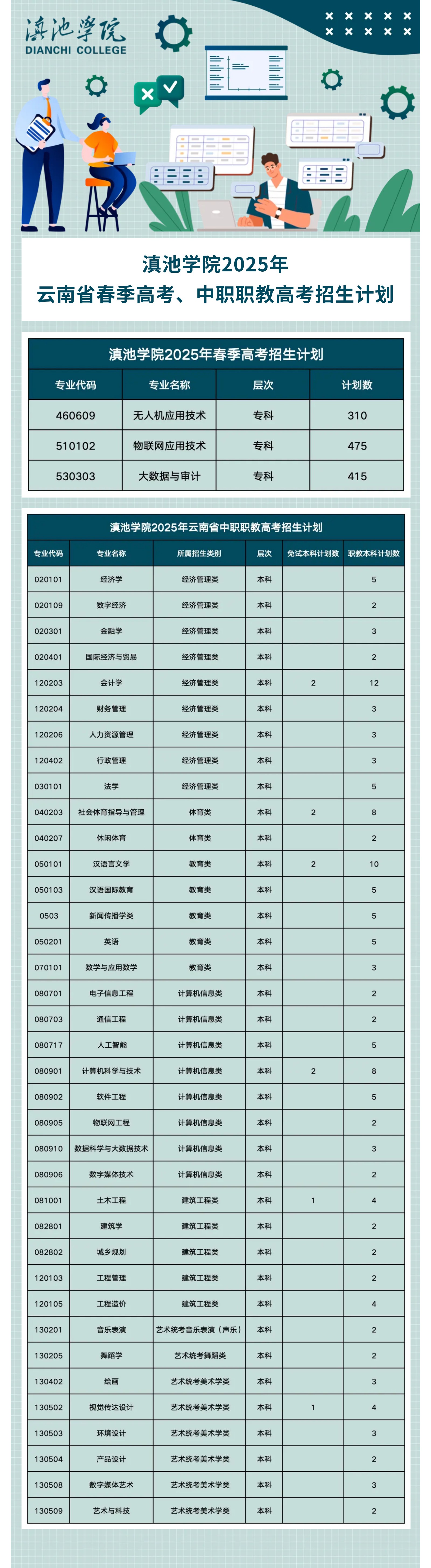 滇池学院2025年云南省春季高考、中职职教高考招生计划