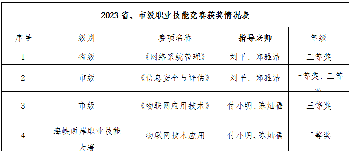 近几年,在经过师生的共同努力下,物联网应用技术专业在省、市级及行业杯赛中均取得了优异的成绩;
