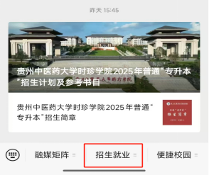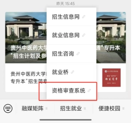 第一步:手机搜索贵州中医药大学时珍学院公众号→招生就业→资格审查系统
