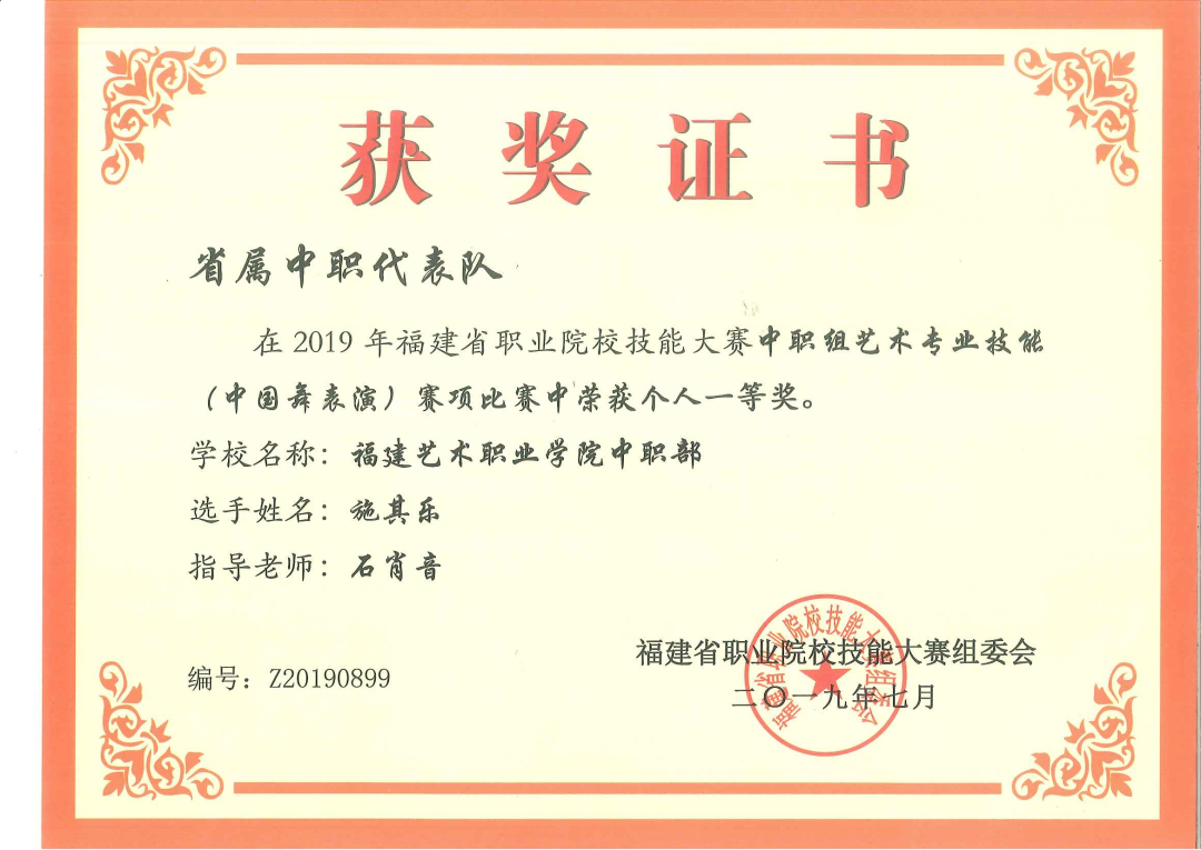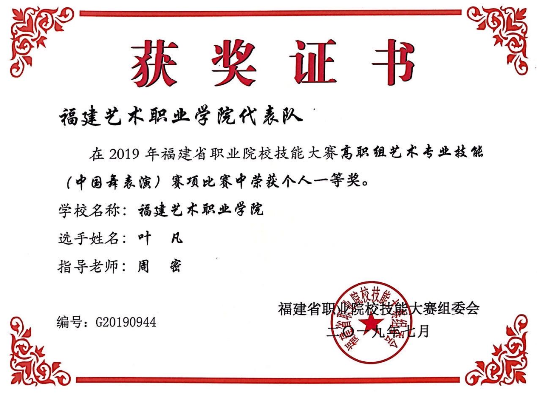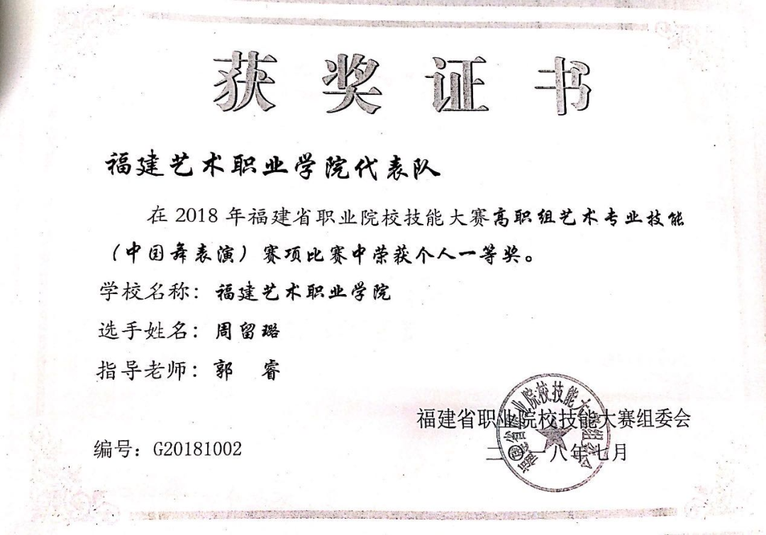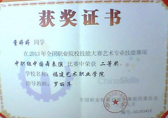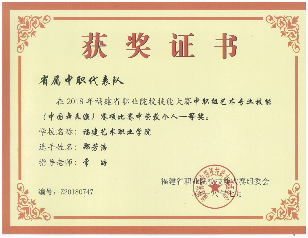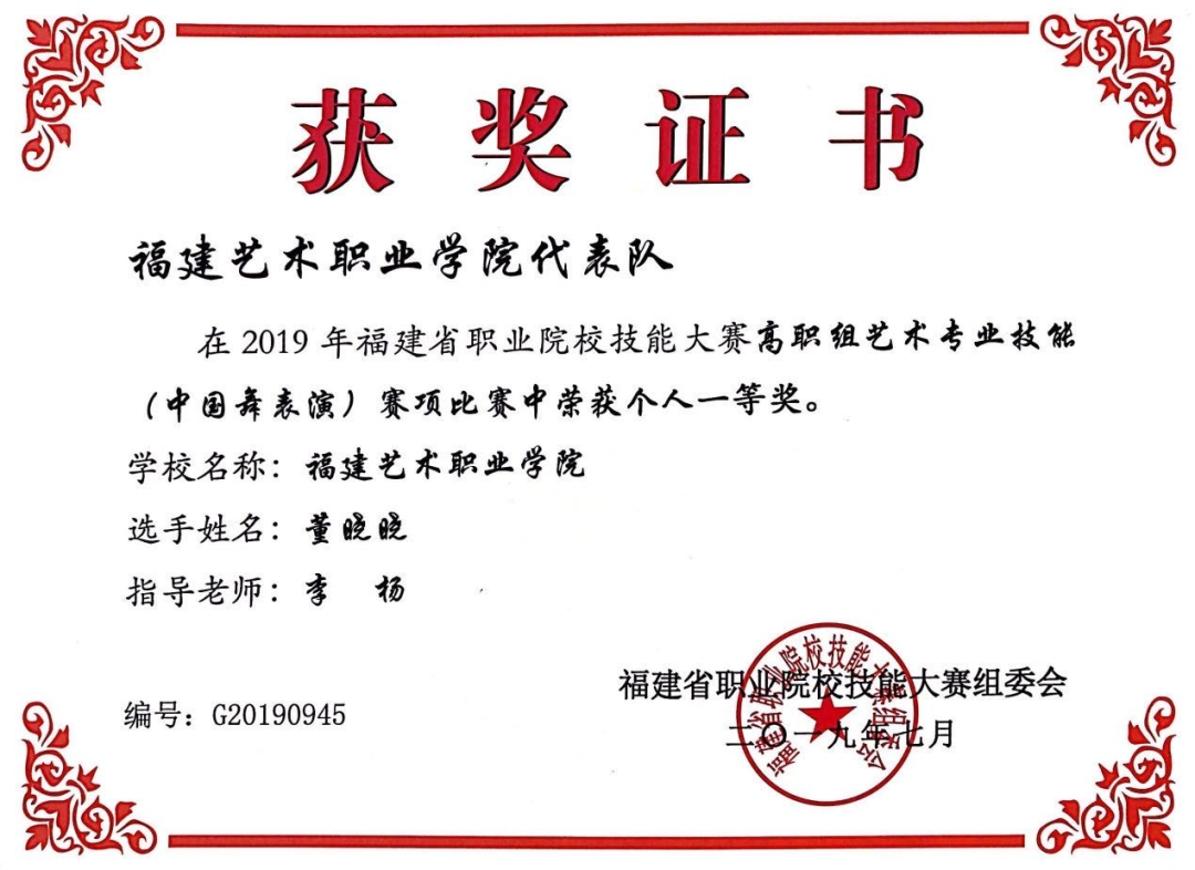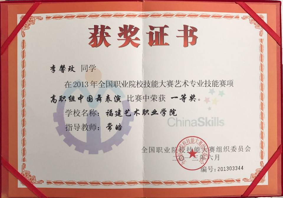 常皓舞蹈学院基训教研室主任,中国舞蹈家协会会员。2013年获全国职业技能大赛表演一等奖,优秀指导教师;2013—2019年获福建省职业技能大赛优秀指导教师称号;2011年获福建省音乐舞蹈节创作三等奖;2012年获华东六省一市舞蹈比赛获创作二等奖。