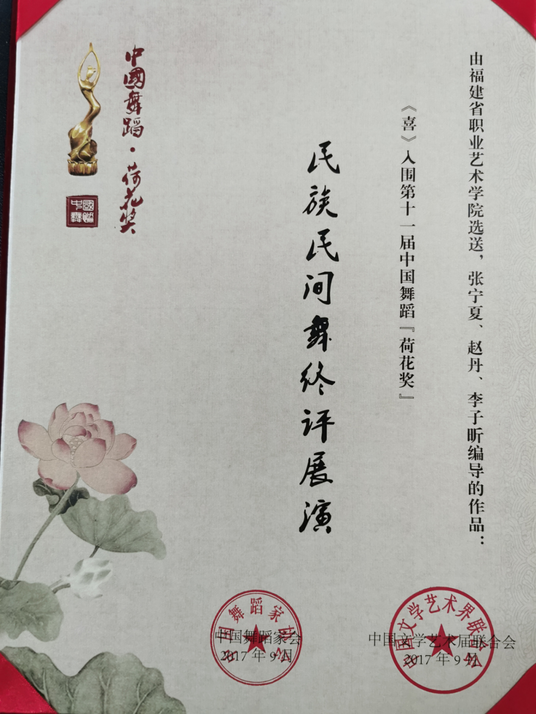 李子昕舞蹈学院剧目教研室主任。编创作品《幻蝶》、《春韵流芳》、《天边》、《喜》等作品获得中国“荷花奖”民族民间舞评奖、华东六省一市大学生舞蹈比赛、福建省“百合花奖”专业舞蹈比赛、福建省音乐舞蹈节等赛事奖项。5次指导学生参加全国和福建省职业技能大赛中国舞比赛一等奖、同时荣获优秀指导教师奖。