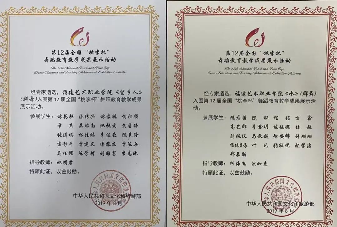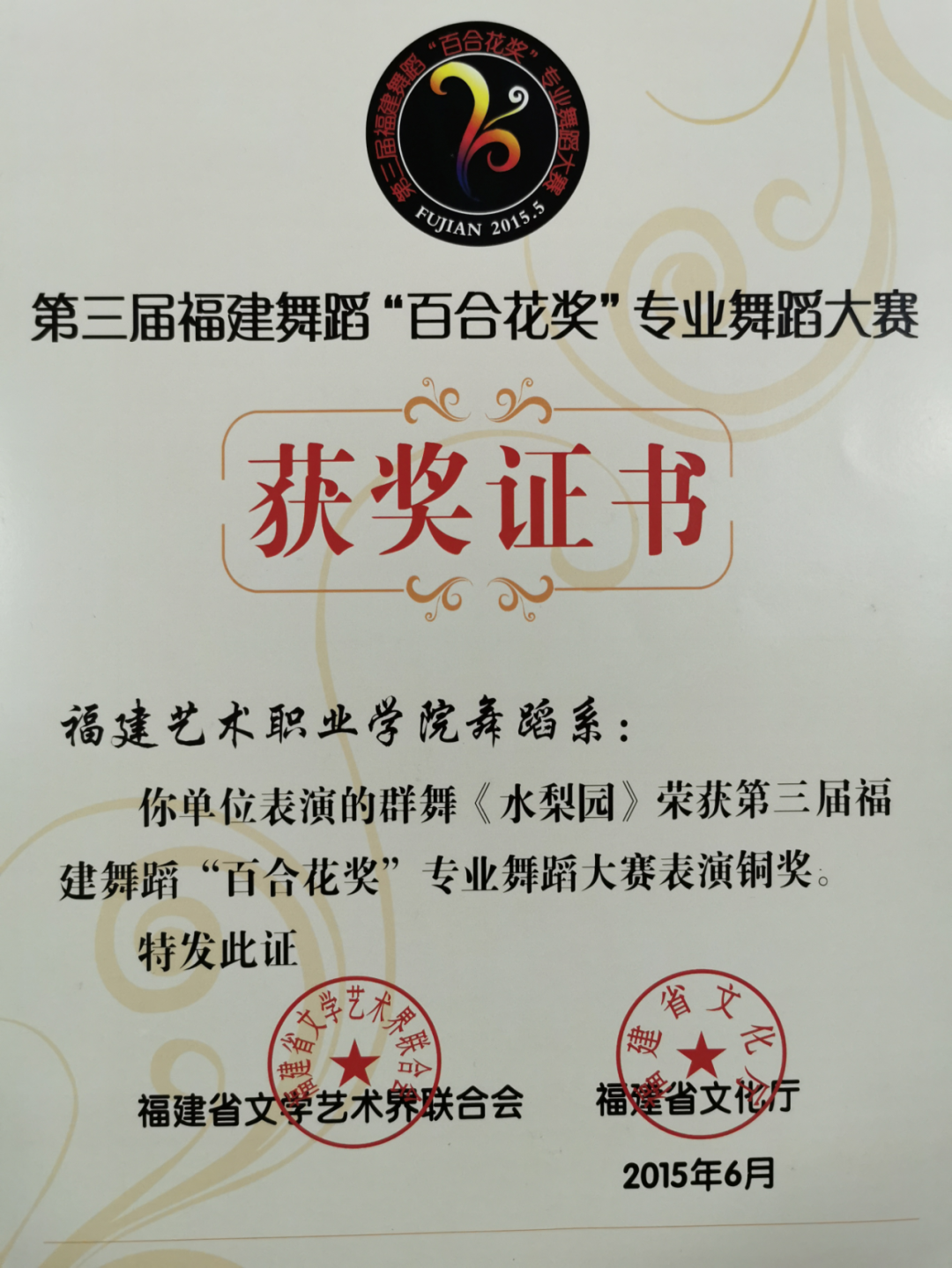 舞蹈表演专业是建校时设立的传统优势品牌专业,致力于培养应用型、创新型、复合型舞蹈专业人才,先后获批福建省高职高专精品专业、全国职业院校首批100个民族文化传承与创新示范专业点、福建省高校应用型本科人才培养试点项目(与泉州师范学院联办舞蹈学应用型本科专业)、高职教育示范专业、产教融合示范专业等殊荣。《福建民间舞》《舞蹈艺术实践》《中国古典舞》等课程入选省级“精品课程”,《创作引领,剧目驱动——“演编一体”复合型高职舞蹈人才培养的实践与创新》荣获“2020年职业教育省级教学成果一等奖”,办学成果斐然。