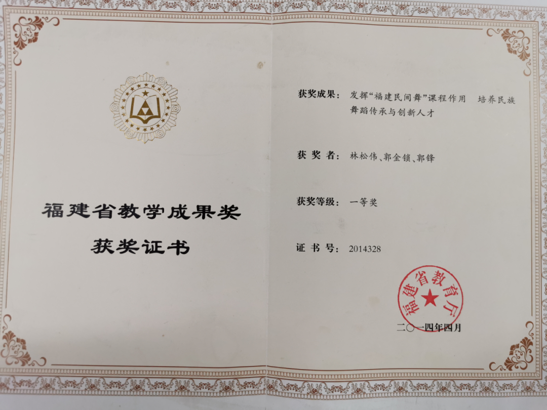 郭锋非物质文化遗产保护项目《福建民间舞传习所》负责人;福建省非物质文化遗产保护项目《踢球舞》传承人;福建省舞蹈家协会理事。编著、出版《褔建民间舞教程》《福建民间舞教材》。荣获福建省教学成果一等奖,获“第七届福建艺术节”个人一等奖等奖项。