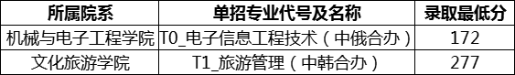 002组三校生其他类中非井冈山应用科技学校联合培养专业最低控制线280分,井冈山应用科技学校联合培养的电子商务和电子信息工程技术专业最低控制线234分;
