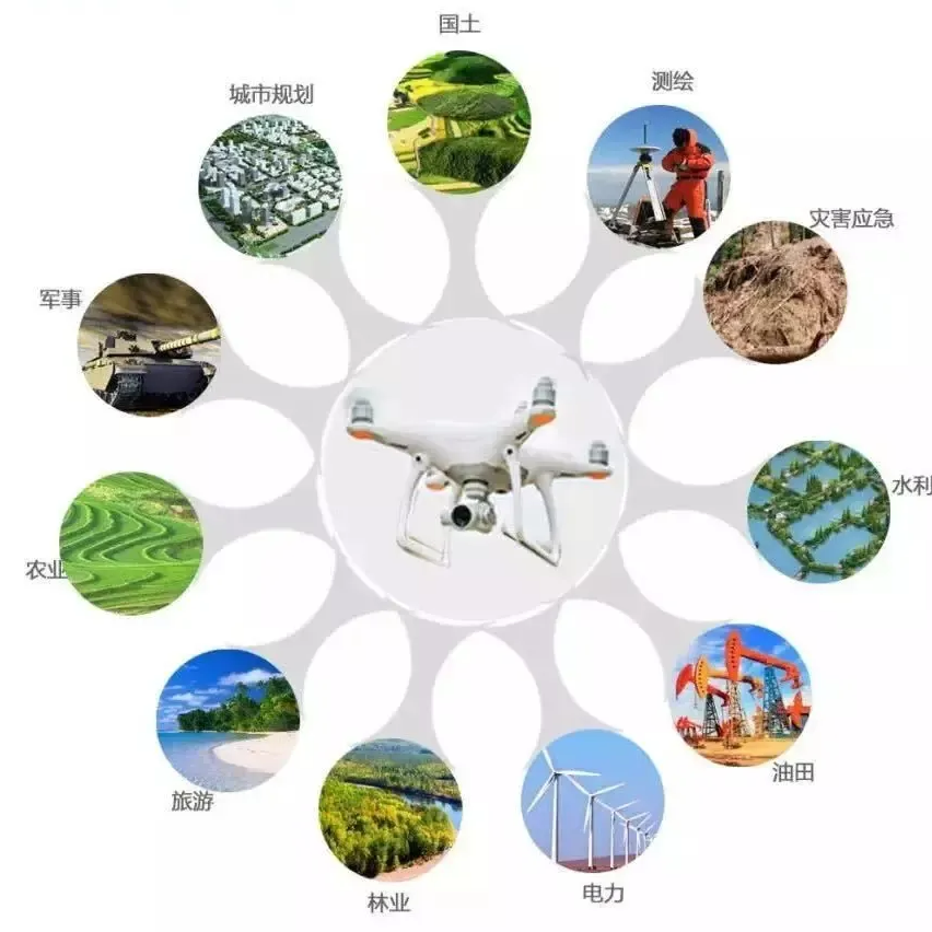 无人机应用技术系新兴技术,属于高新前沿科技产业,随着科技的发展,无人机应用除军事用途外,在民用领域也越来越广泛。目前已被成功用于影视航拍、测绘航测、高压线巡查、地址勘探、抢险救灾、农药喷洒、商业表演等领域,越来越多的行业正希望用无人机取代传统的工作方式,我国无人机行业发展速度极快,应用领域极大。