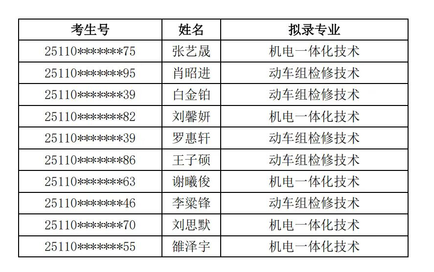 石家庄铁路职业技术学院 2025年北京市高等职业教育自主招生拟录取名单公示