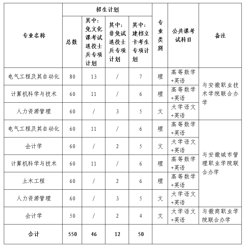 按安徽省高招工作流程,专升本正式录取工作与普通高考考生同步进行,往年一般在7月下旬投档和录取。新生录取通知书预计8月上旬寄发,中国邮政寄出时将短信通知收件人,考生届时也可在“安徽建筑大学招生办”微信小程序的“录取查询”版块查询个人邮件单号。学费缴纳、开学报到等事宜参见随通知书寄发的《新生入学指南》。党团组织关系转接、户口、档案迁移与邮寄对象均为联合培养点院校,安徽职业技术学院咨询电话:0551-64689991(学生处);64689052(教务处),64265110(保卫处),64689320(团委),64689330(后勤处);安徽城市管理职业学院咨询电话:0551-62516150(学生处),62516159(资助、贷款咨询),62516110(保卫处),62516170(财务处),62516137、62516138(招就创办);徽商职业学院咨询电话:0551-68580293(学生处),68580910(资助、贷款咨询),68580911(安全管理处),68580938(财务处),68580900(招就办),我校将在7月正式录取工作结束后根据实际情况发布最新须知。