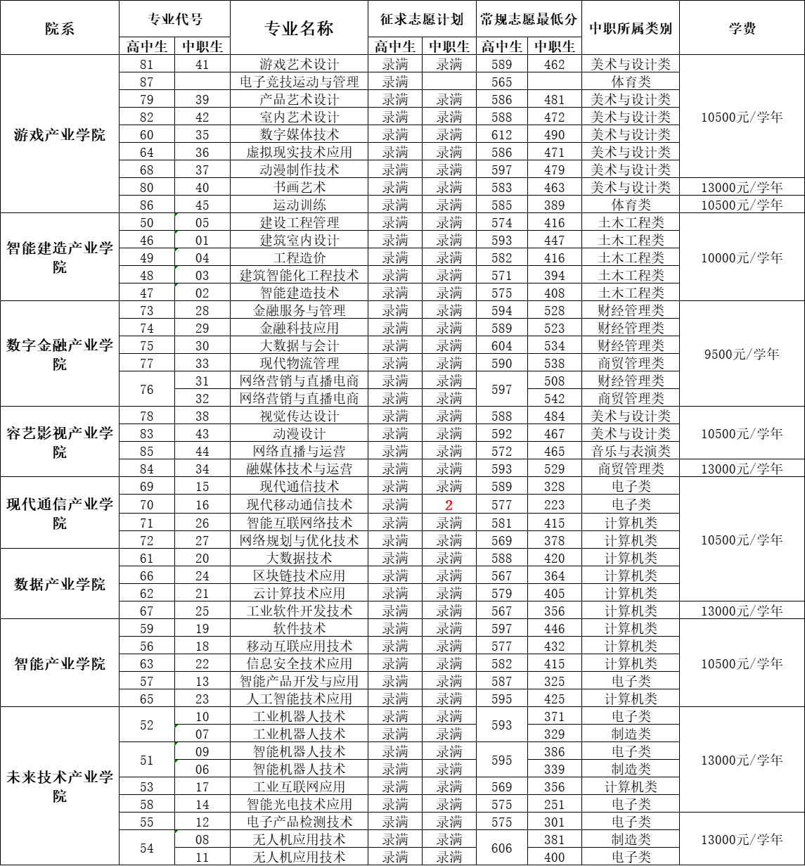 福州软件职业技术学院2025年高职分类考试征求志愿招生计划 (院校代号4015)
