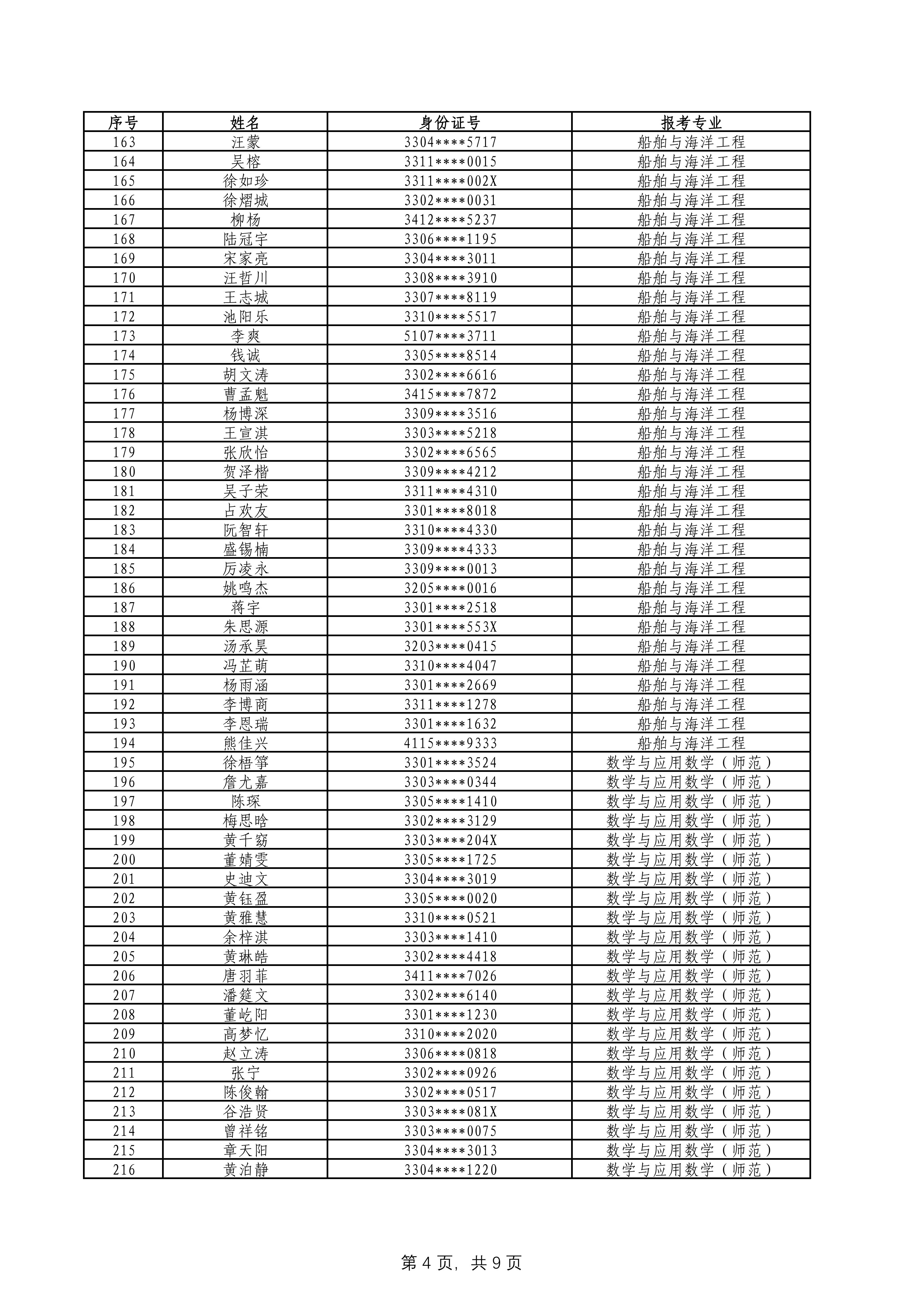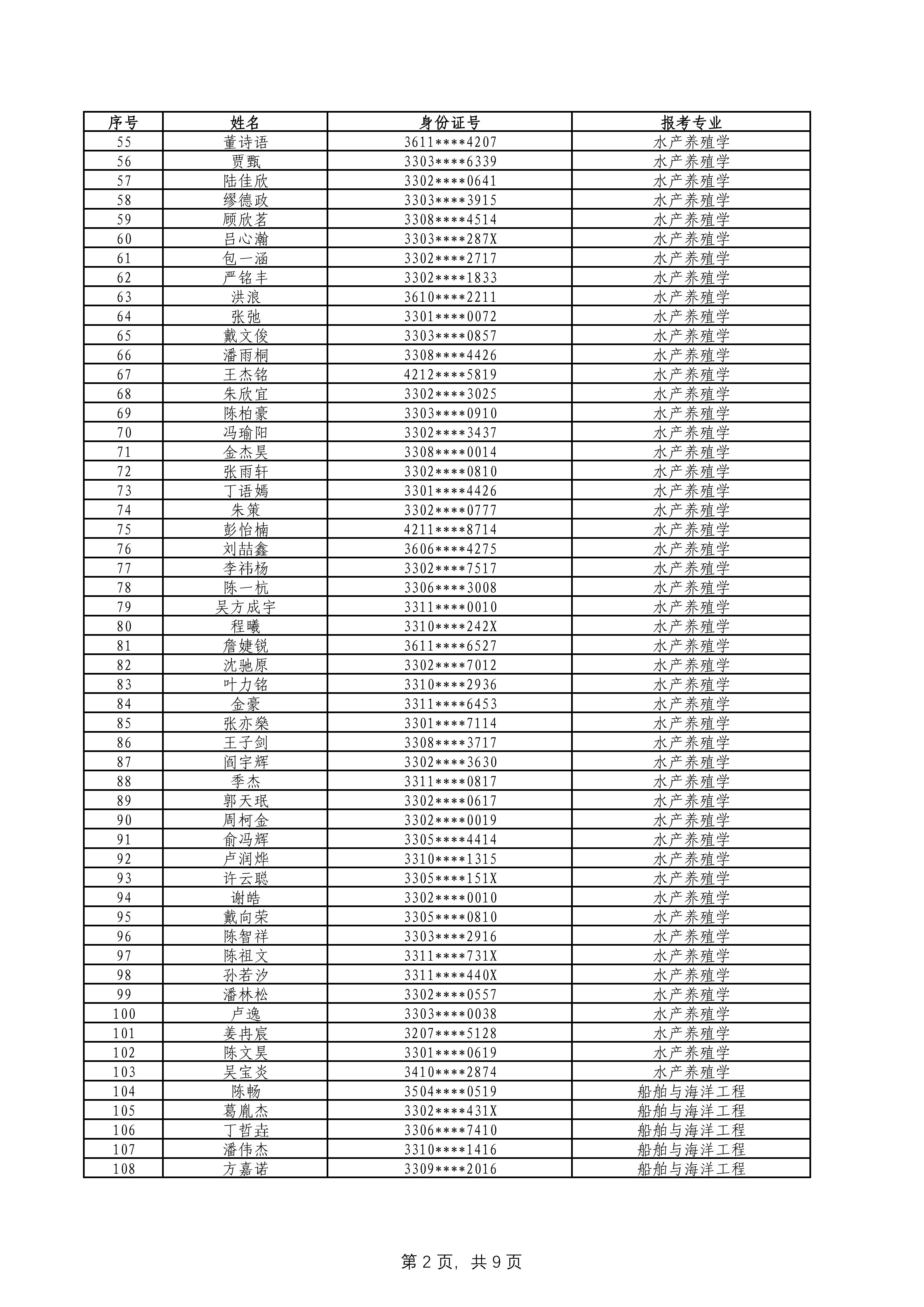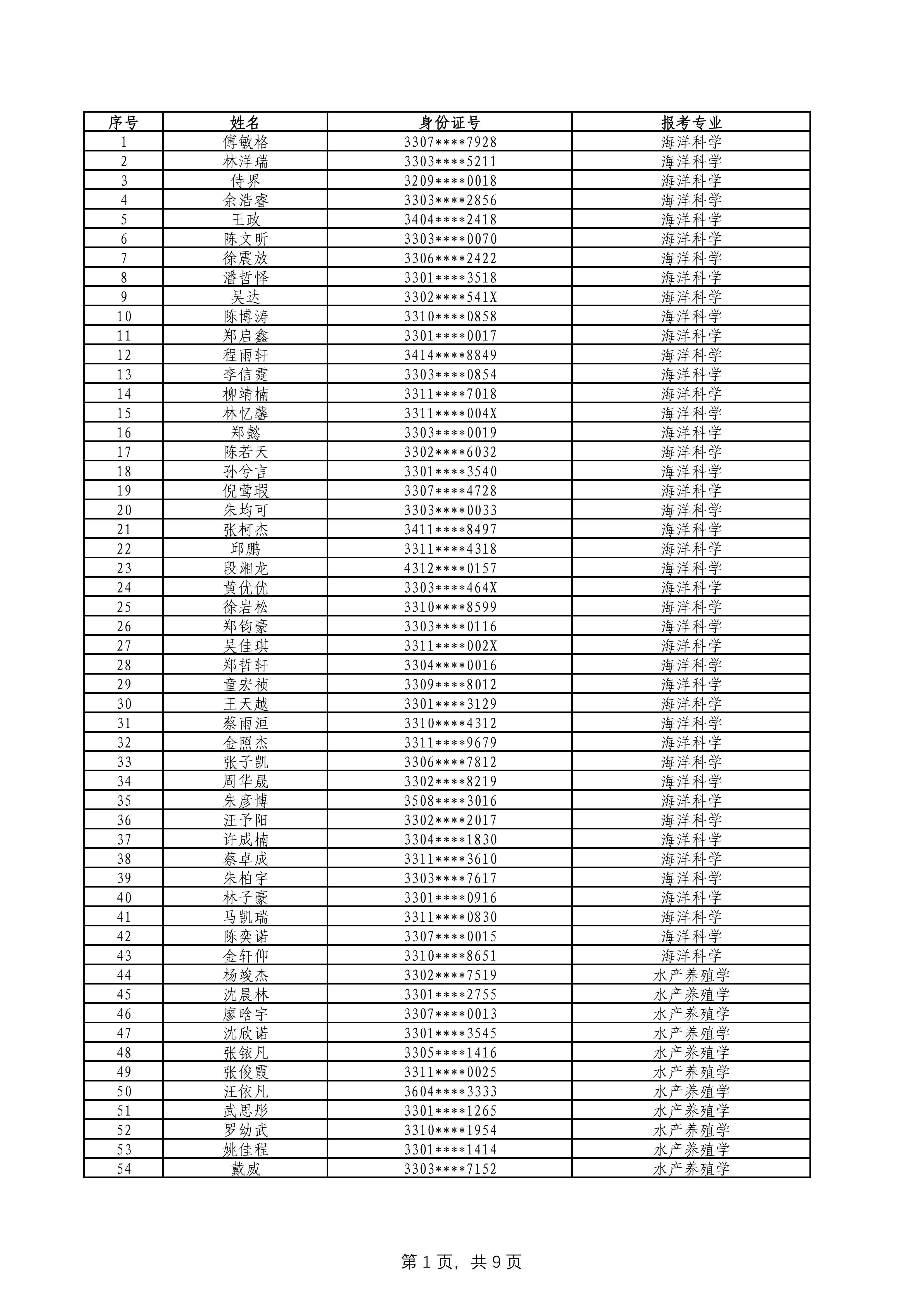 附件1:浙江海洋大学2025年三位一体综合评价招生入围考生名单(公示稿)