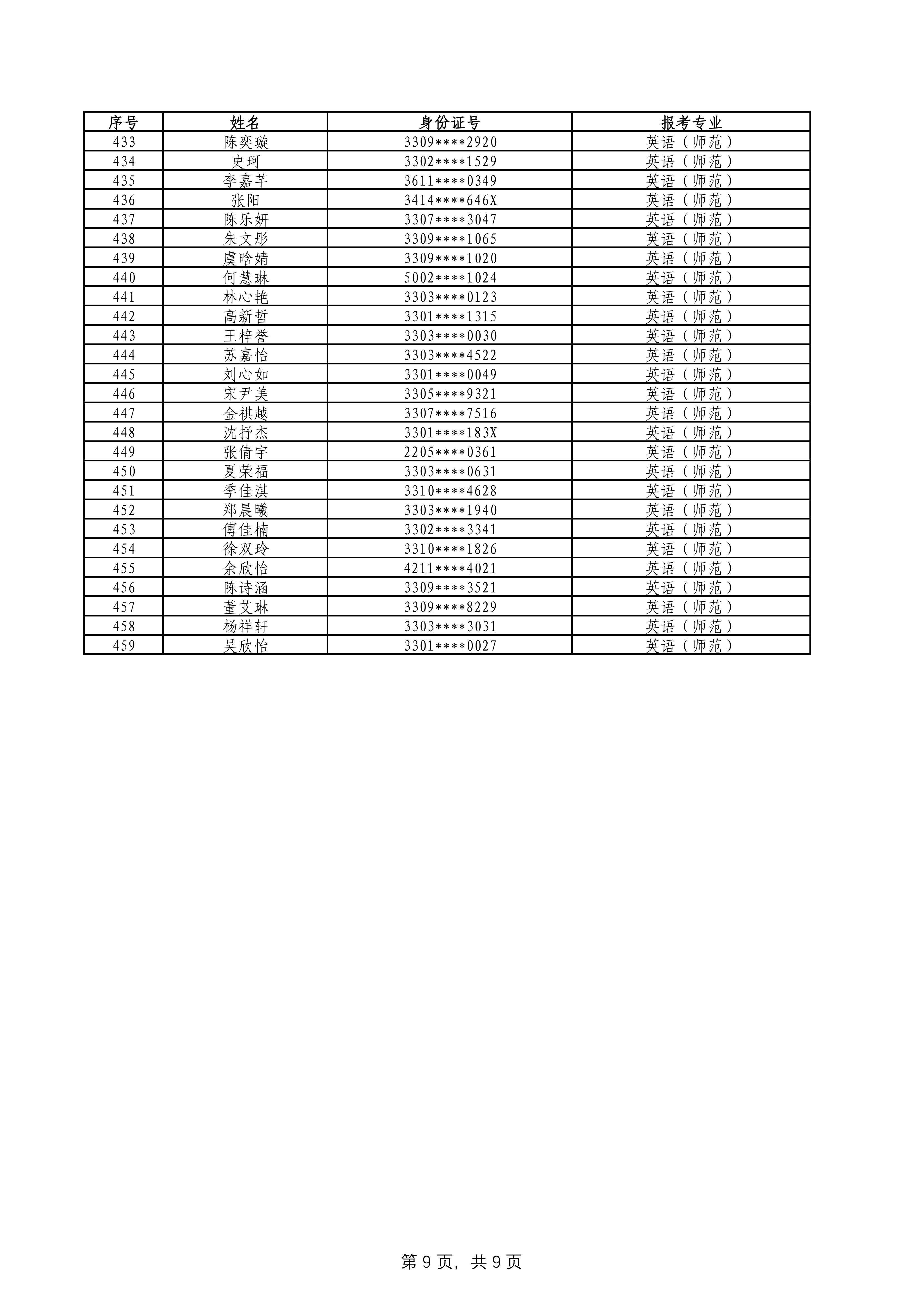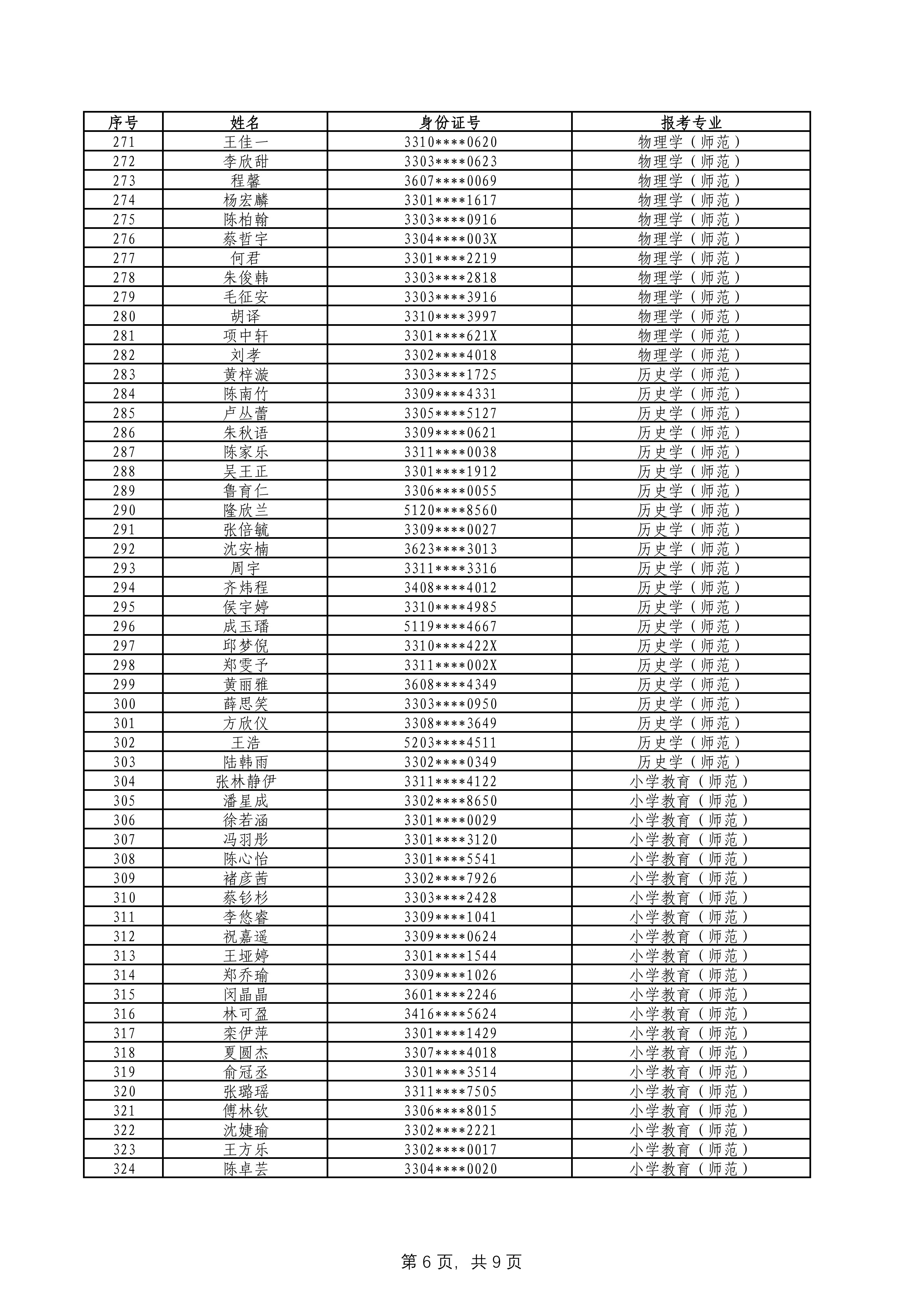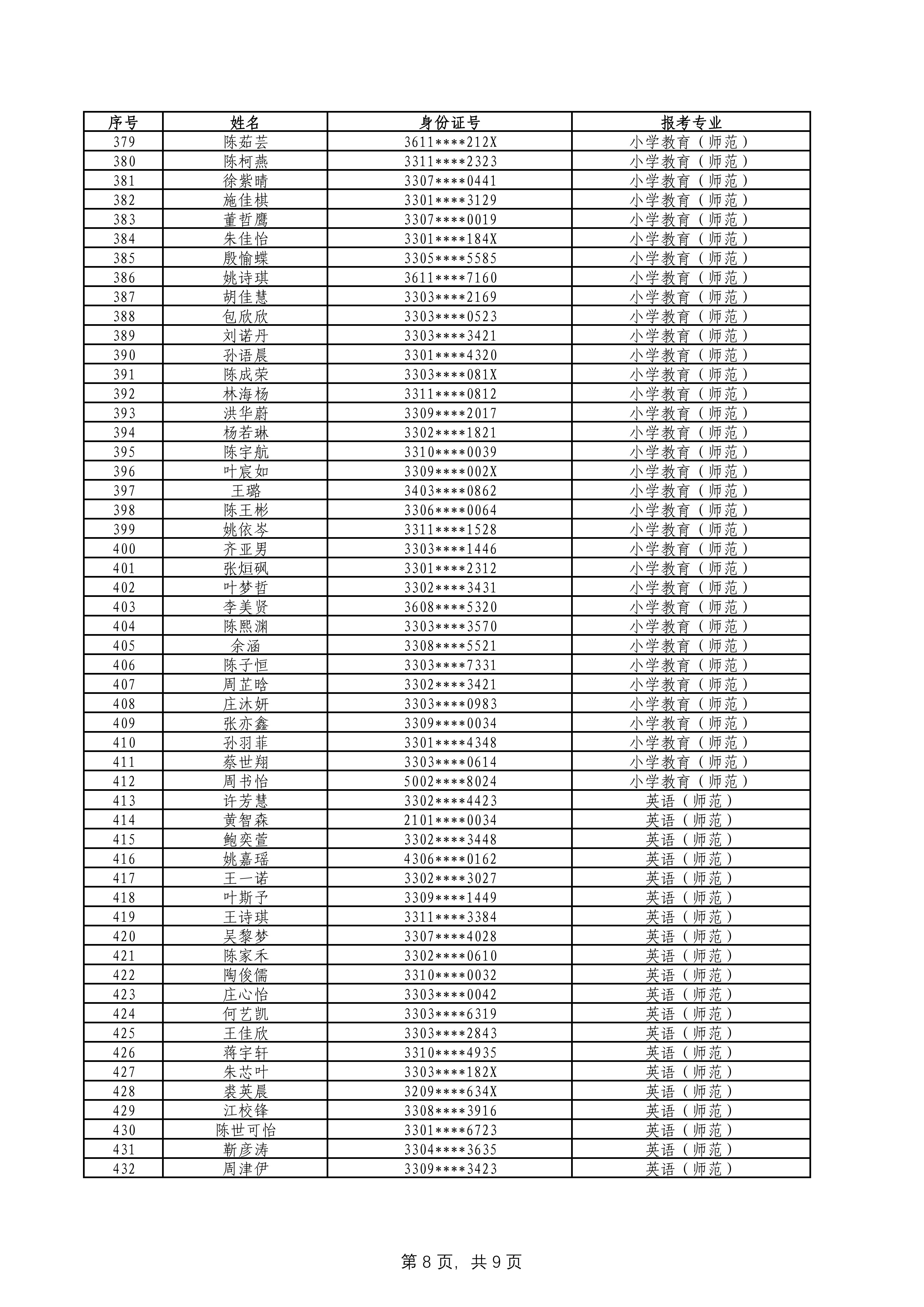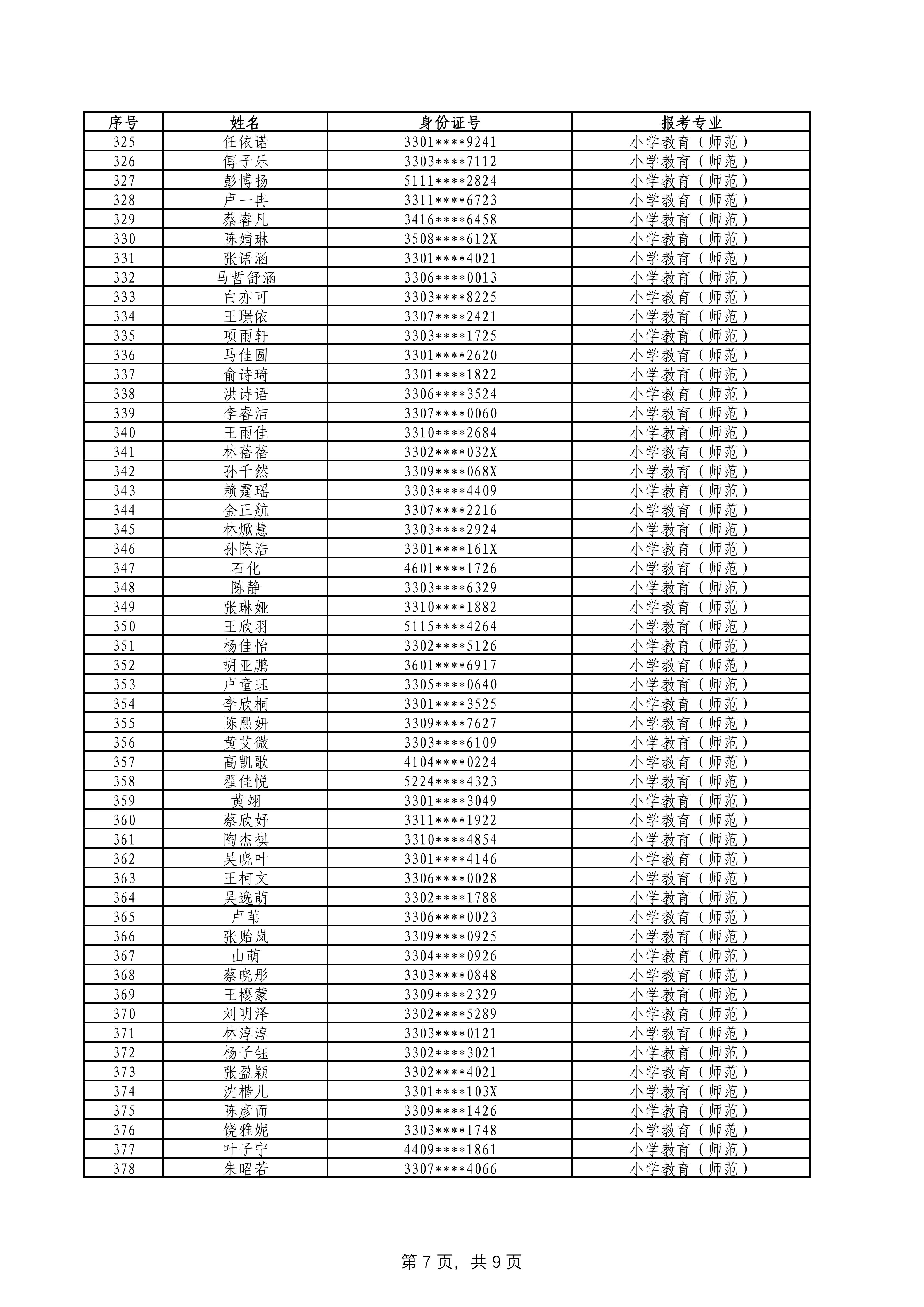 附件1:浙江海洋大学2025年三位一体综合评价招生入围考生名单(公示稿)
