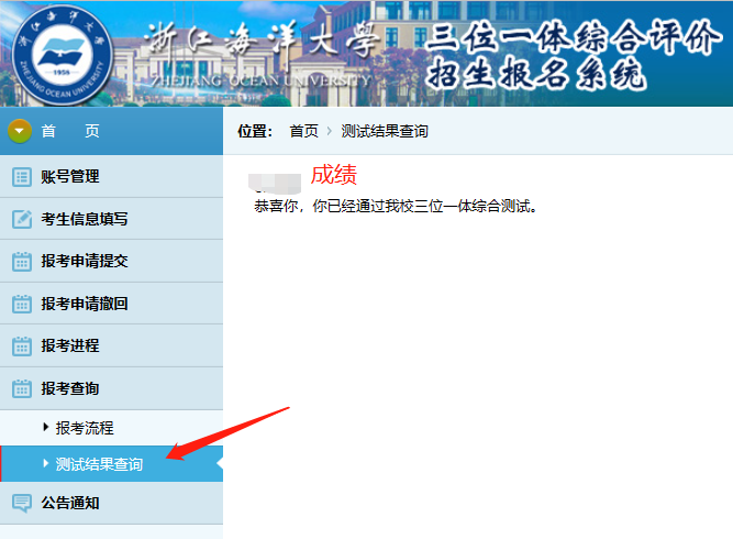 (https://swyt.zjou.edu.cn),点击“报考查询-测试结果查询”,查询本人的综合素质测试成绩。