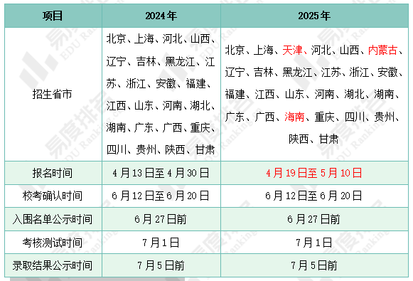 2. 2025年相比上年推迟报名时间,在三省新增招生