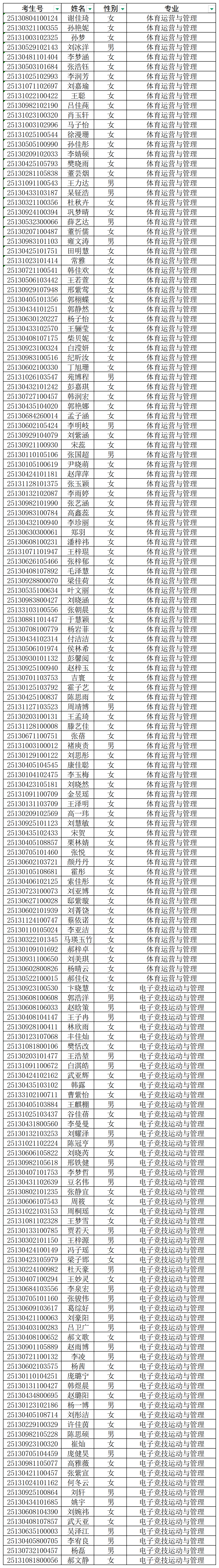 天津体育职业学院2025年河北省高职单招录取学生名单公示