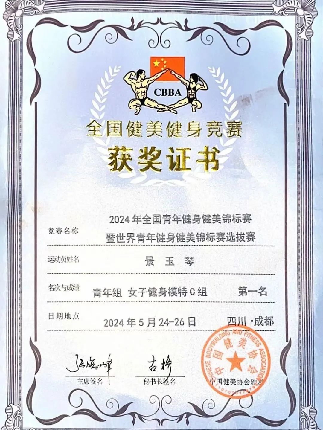 景玉琴于2024年10月作为国家队成员,赴立陶宛参加世界健身模特锦标赛,在2024年世界健身健美锦标赛成年B组、青年组和新人公开组三个组别中均荣获第六名。她以其在世界健身模特锦标赛中的杰出表现,荣获“国际级健将”称号,成为学校的骄傲。