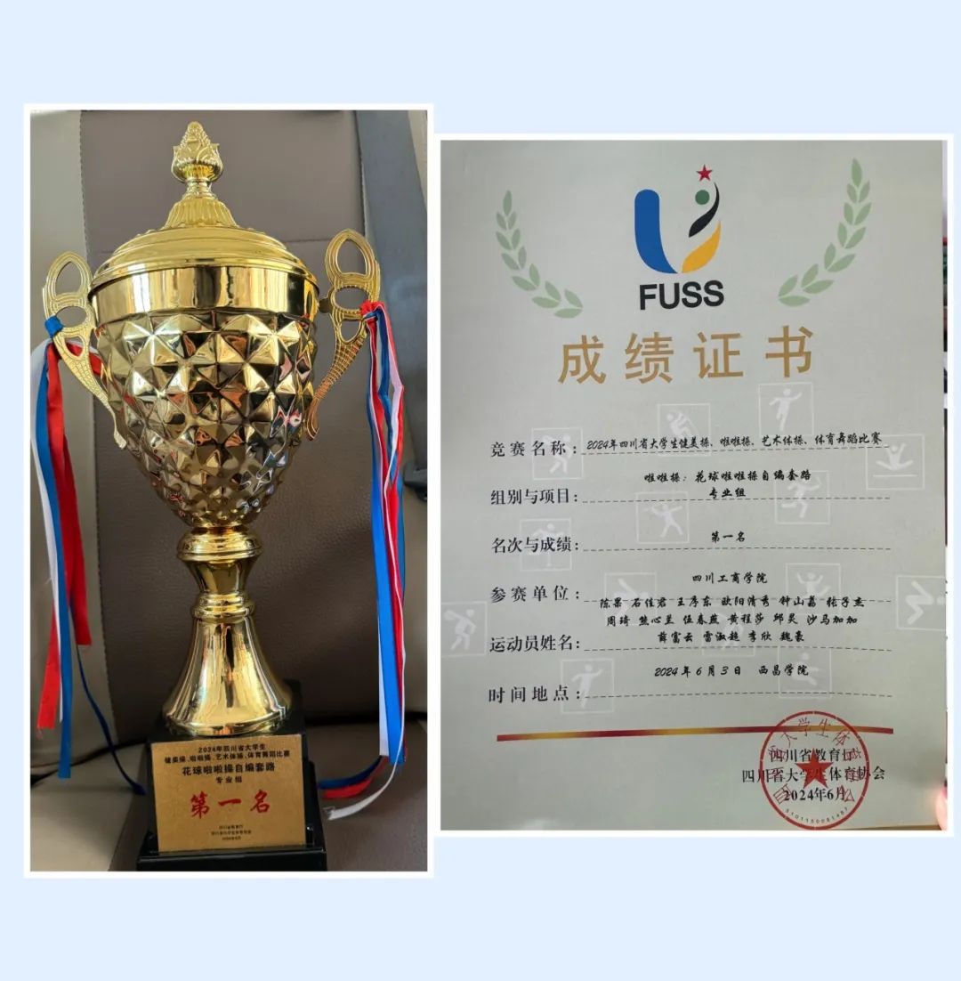 啦啦操训练队在2024年四川省大学生健美操、啦啦操、艺术体操、体育舞蹈比赛中获得啦啦操自编套路(专业组)第一名、排舞集体自选(专业组)第四名。