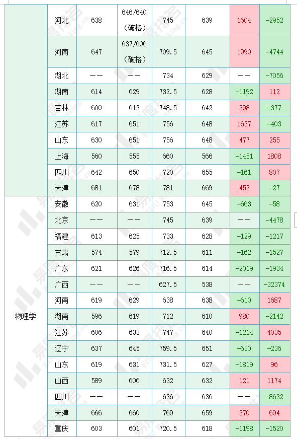 注:1.普通批录取最低分为学校普通批录取最低分(不含中外合作、预科等特殊招生类型,