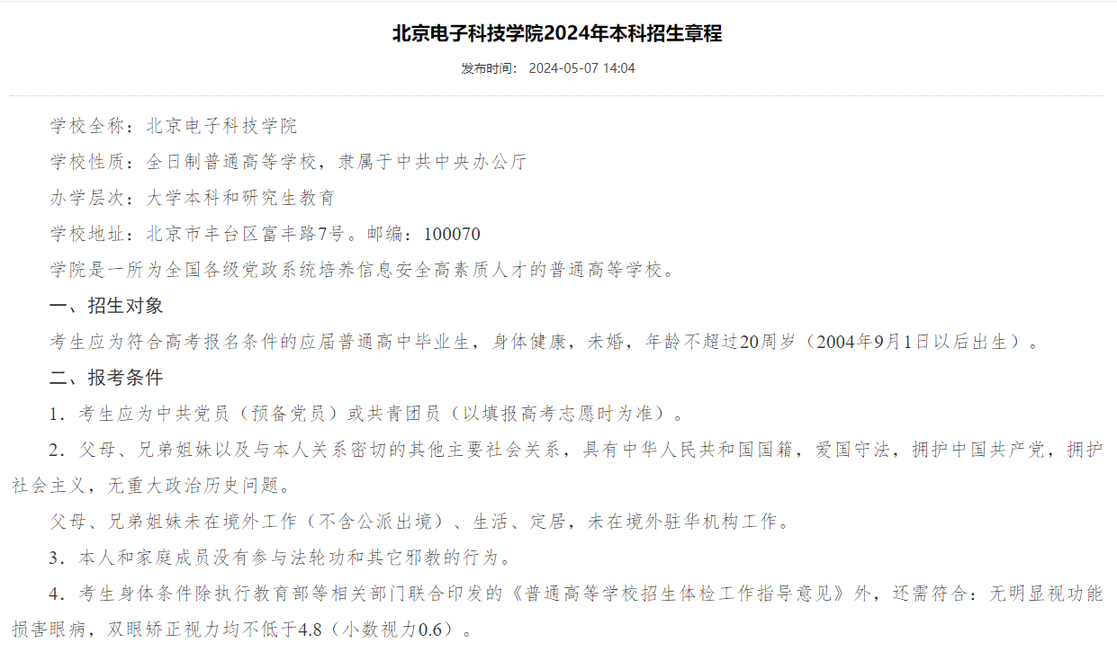 北京电子科技学院以其独特的专业定位、卓越的就业前景和严格的报考条件,吸引了众多高分考生的关注。尽管其录取分数线直逼中上游985高校,但学院依然凭借其在信息安全和党政机关人才培养方面的独特优势,成为众多考生心目中的理想选择。对于那些渴望进入党政机关工作、为国家信息安全事业贡献力量的考生来说,北京电子科技学院无疑是一个极具吸引力的平台。