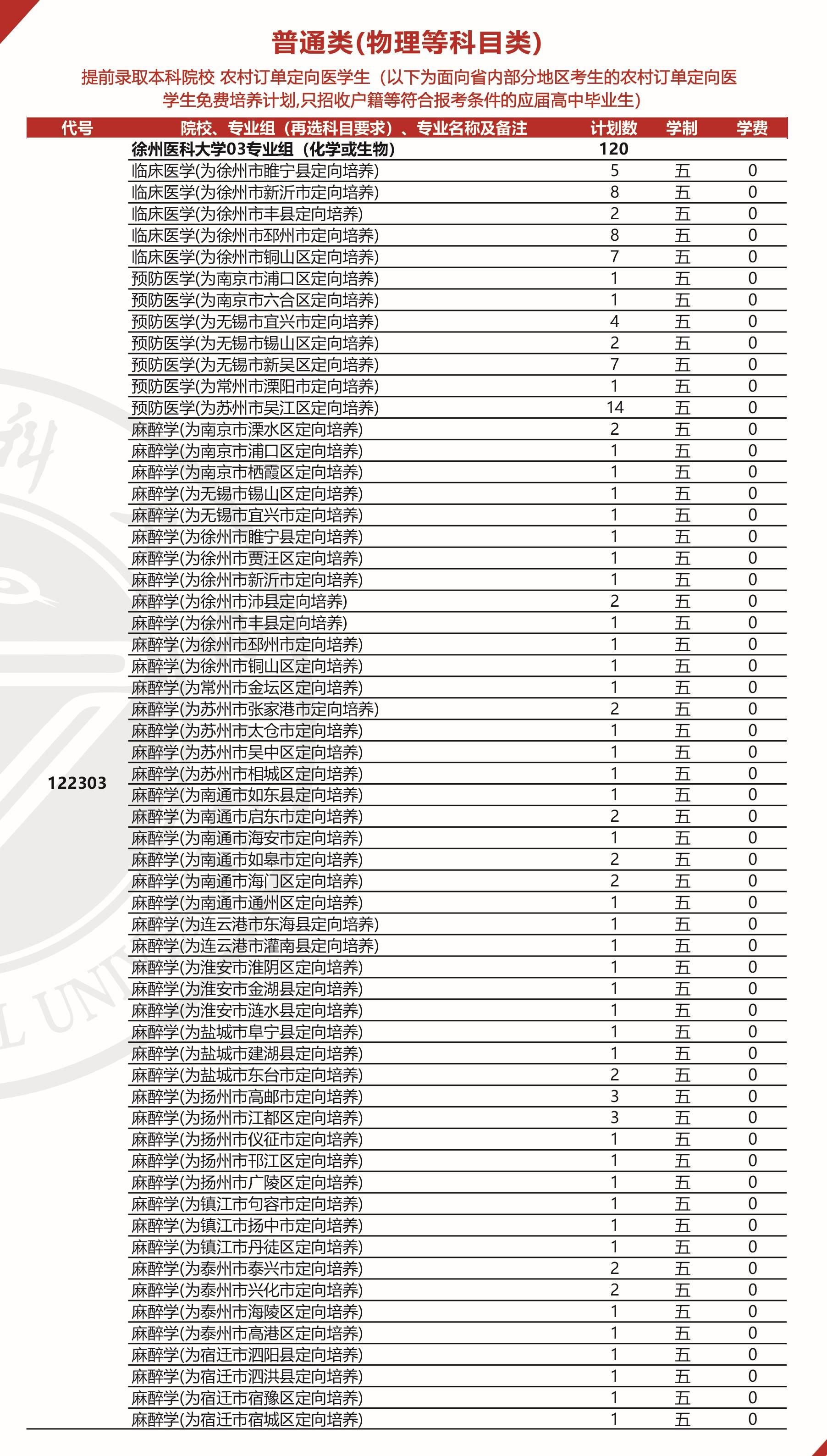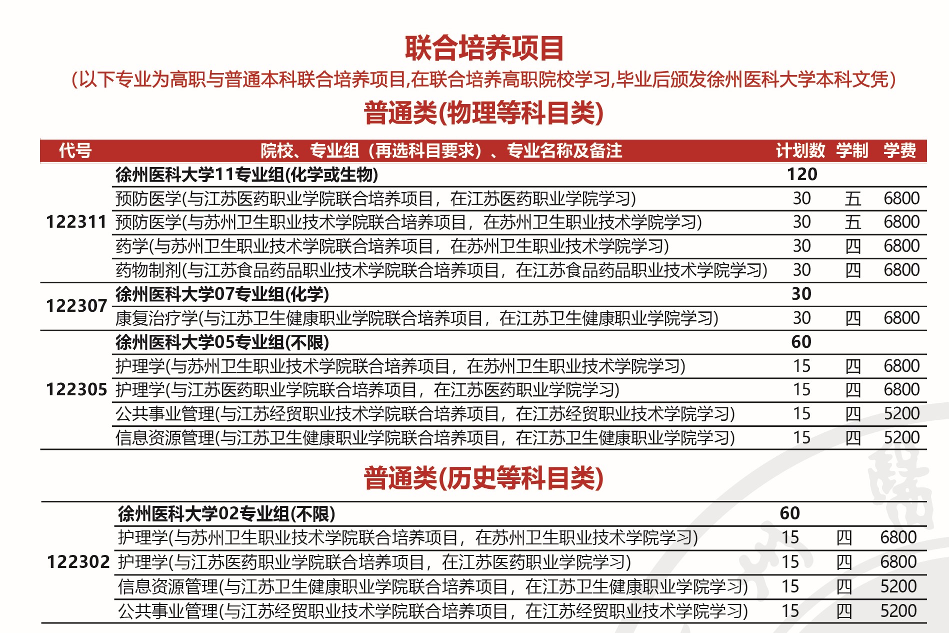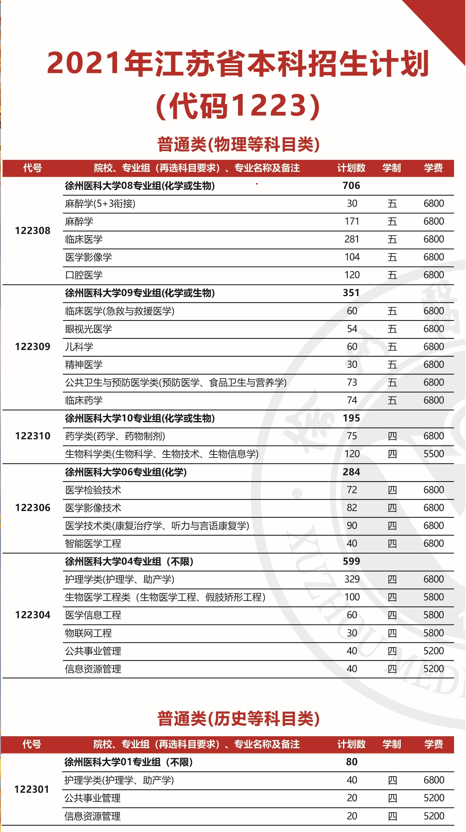 徐州医科大学2021年江苏省本科招生计划汇总表