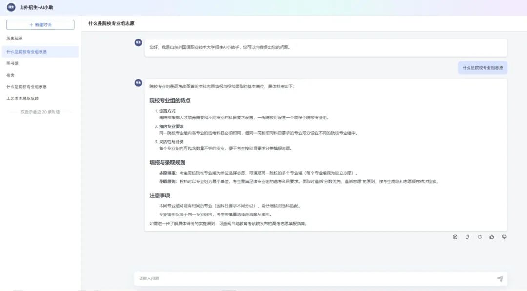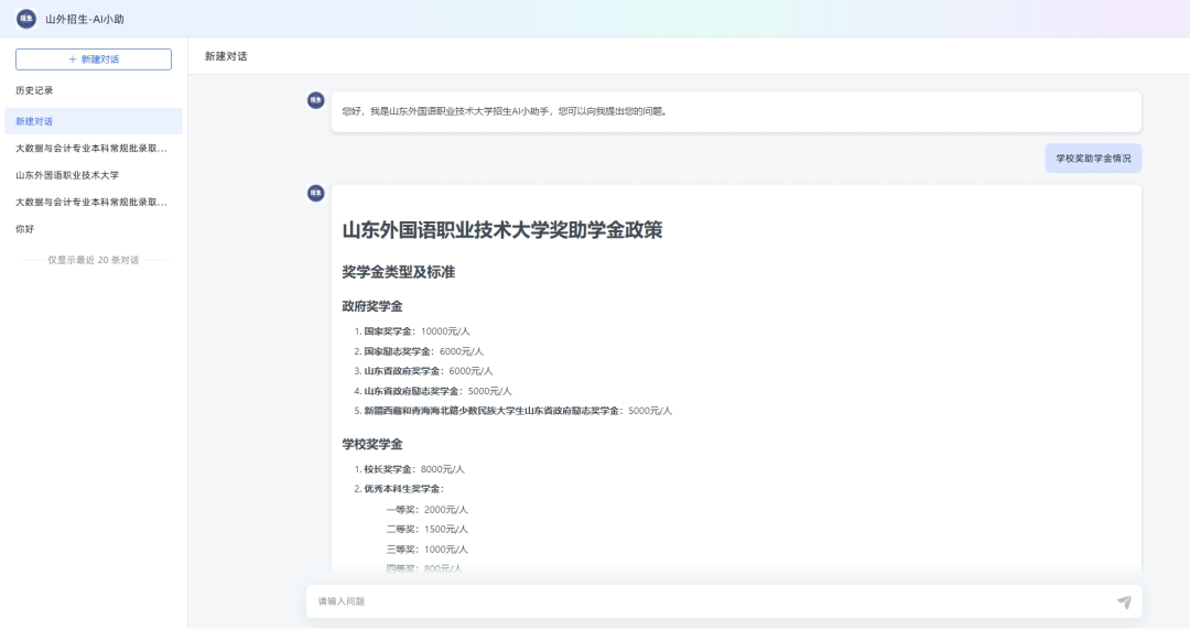 招生AI小助手系统依托DeepSeek大模型的智能推荐能力,不仅能精准解答您的疑问,还能智能关联相关专业详情、资助政策、校园生活等多元信息,助您360°全景式了解山外。