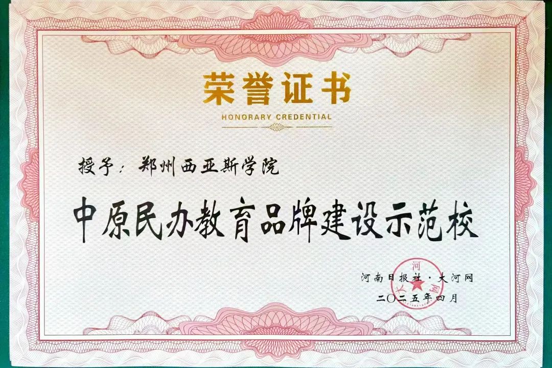 ▲郑州西亚斯学院获评“中原民办教育品牌建设示范校”