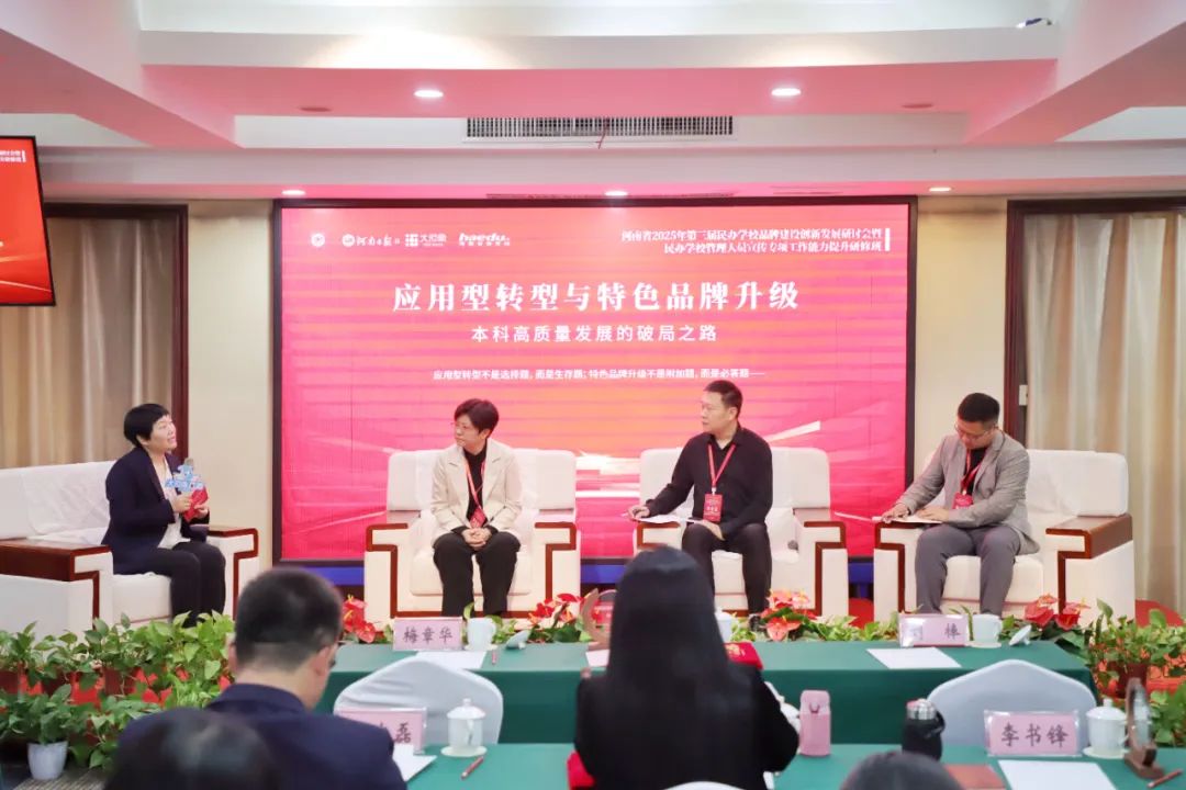 ▲郑州西亚斯学院党委宣传部(新闻中心)部长(主任)王秋红参与圆桌会议(左2)本次研讨会还举行了“应用型转型不是选择题,而是生存题;特色品牌升级不是附加题,而是必答题”等主题的圆桌会议,邀请行业专家学者就民办学校品牌建设的发展、变革、破局进行研讨。郑州西亚斯学院党委宣传部(新闻中心)部长(主任)王秋红应邀作主题分享,结合郑州西亚斯学院国际化办学特色以及“中西合璧”的教育模式,分享学校通过特色品牌升级反哺应用型转型,实现高质量发展双向赋能的路径。