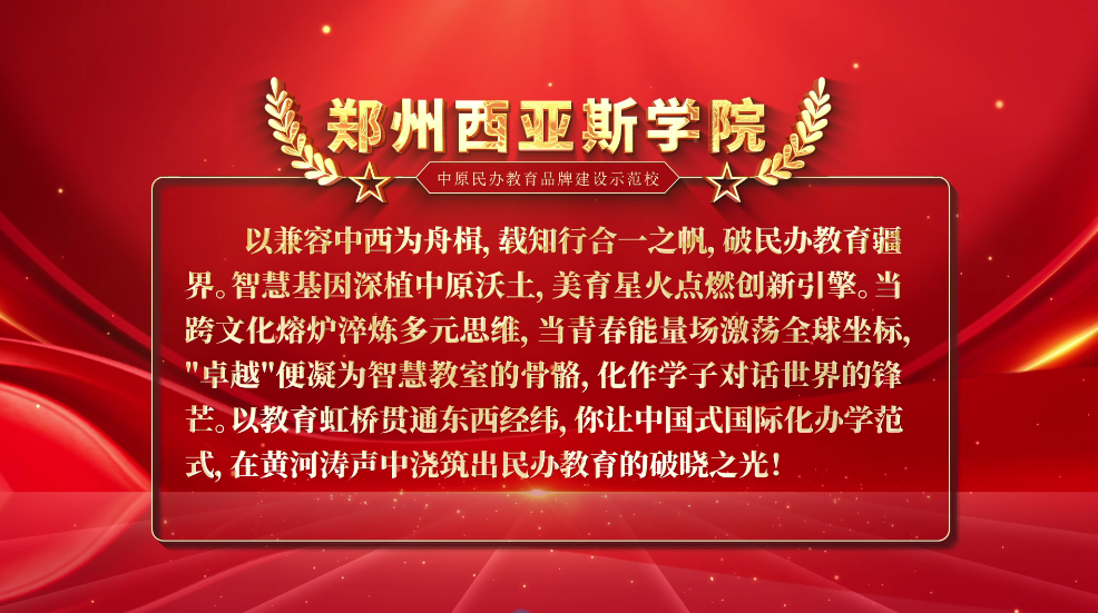 2025年是教育强国建设全面布局之年,是郑州西亚斯学院接受教育部本科教学工作合格评估之年,是学校提质发展的关键之年。学校将秉承“兼容中西 知行合一”的校训,弘扬“开放、包容、求实、创新”的校风,以奋斗之姿、怀热忱之心,扎根中国大地,自信自强、守正创新,实现教育事业的内涵式高质量发展,为建设省内一流、国内知名,国际化特色鲜明的高水平应用型民办大学而不懈奋斗!