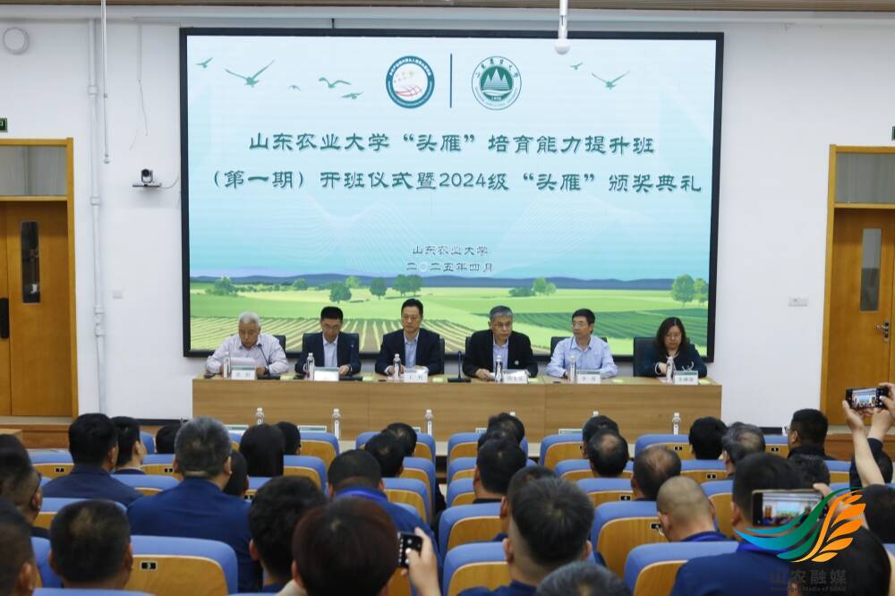 山农融媒4月24日讯4月22日,学校举办“头雁”培育能力提升班(第一期)开班仪式暨2024级“头雁”颁奖仪式。学校党委常委、副校长周玉玺出席仪式并讲话,山东省农业集团有限公司党委副书记、董事、总经理王利出席仪式。