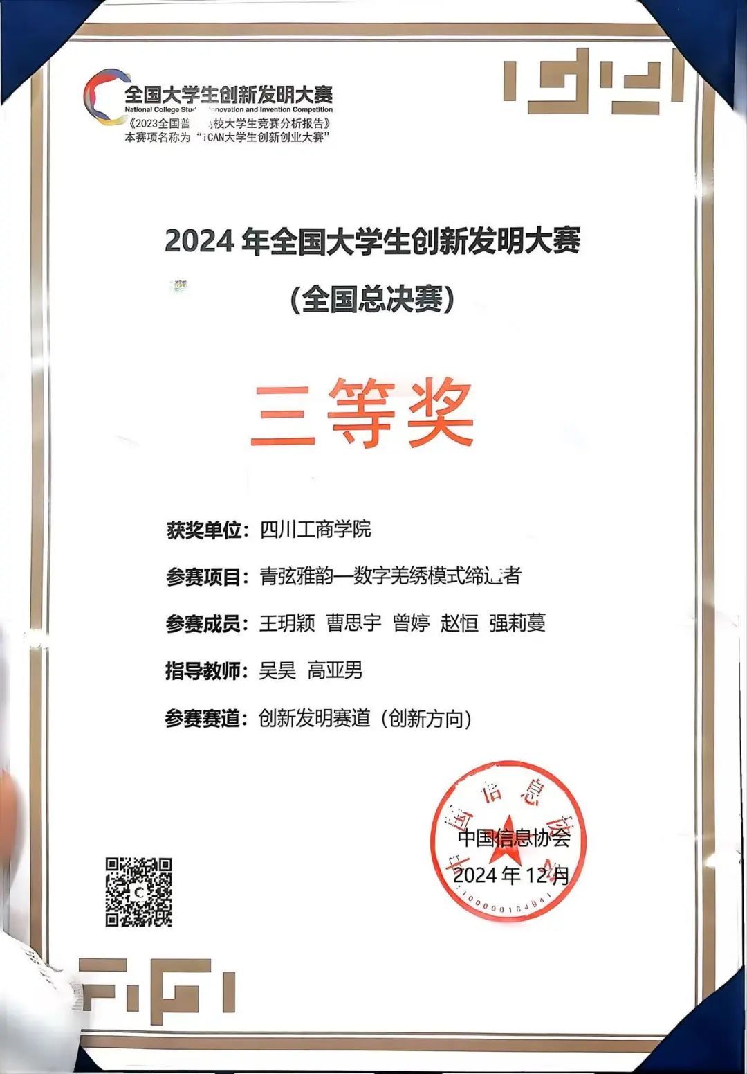 2024年“创新、创意及创业”挑战赛一等奖