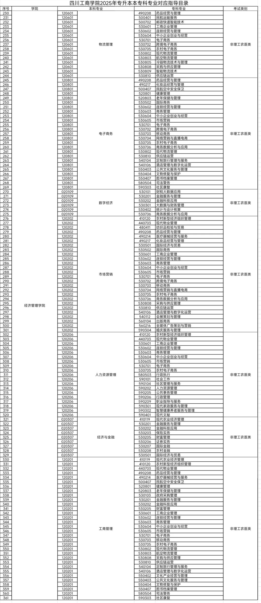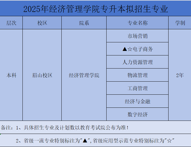 SUMMER2025年经济管理学院专升本专业