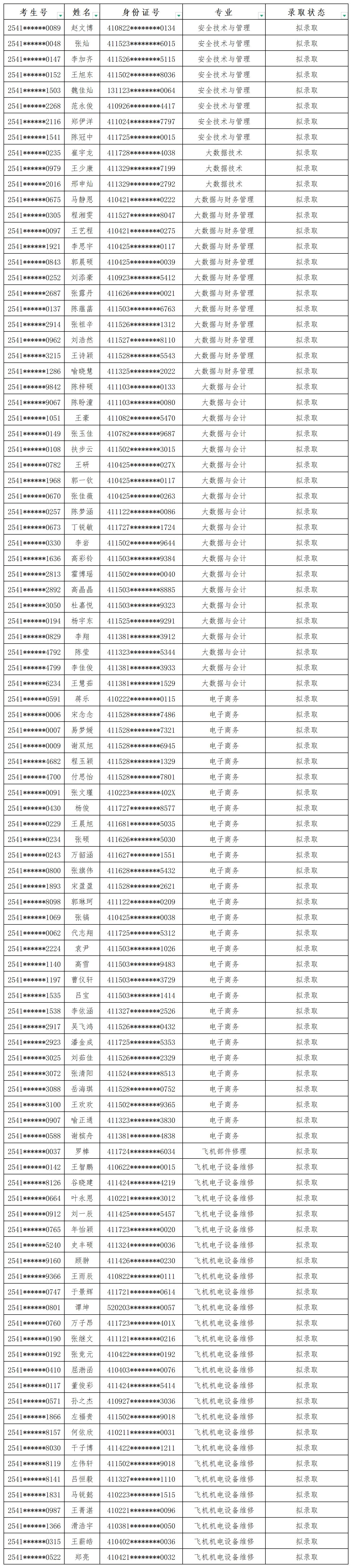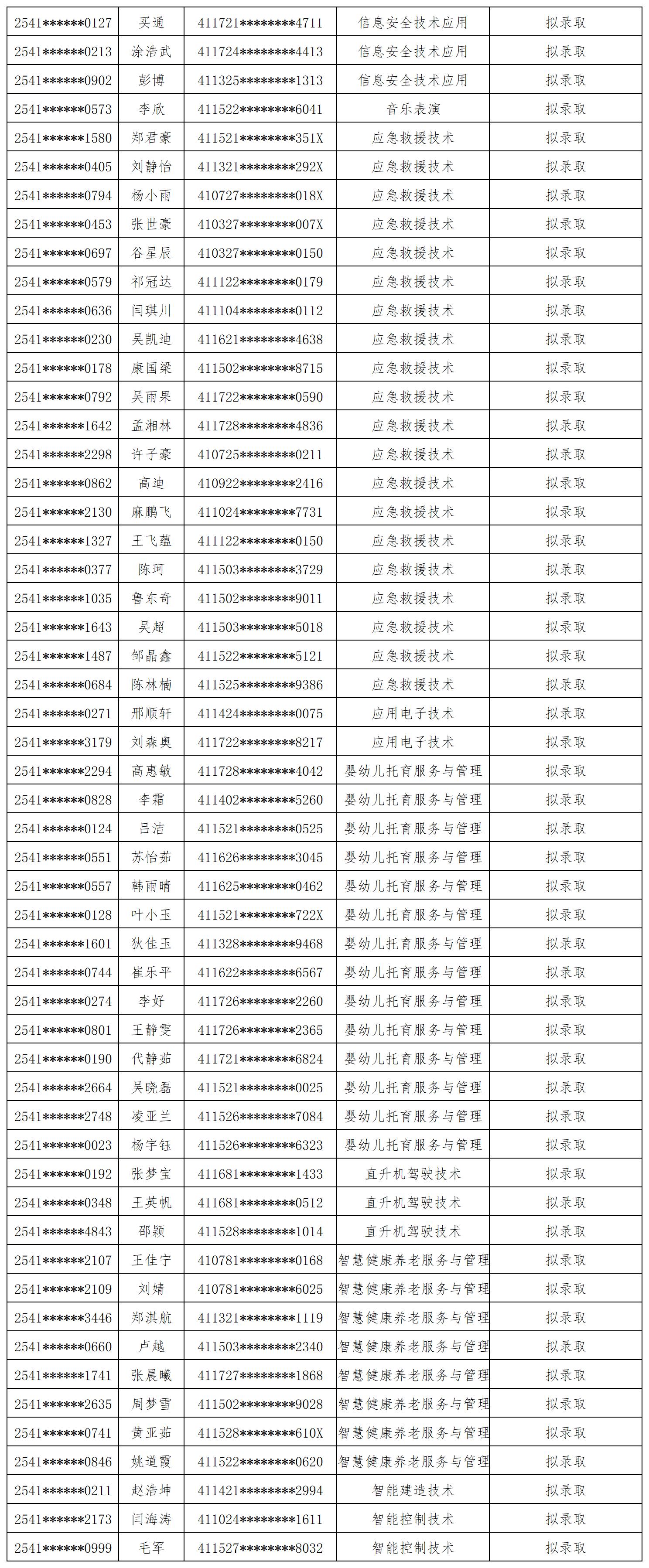 根据2025年我校单独招生章程中录取工作的要求,经学校单独招生工作领导小组审核批准,现对2025年参加我校单招考试拟录取考生名单进行公示,如下: